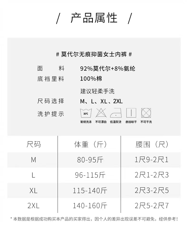 【秋鹭】2433款号60支兰精莫代尔女内裤1盒3条