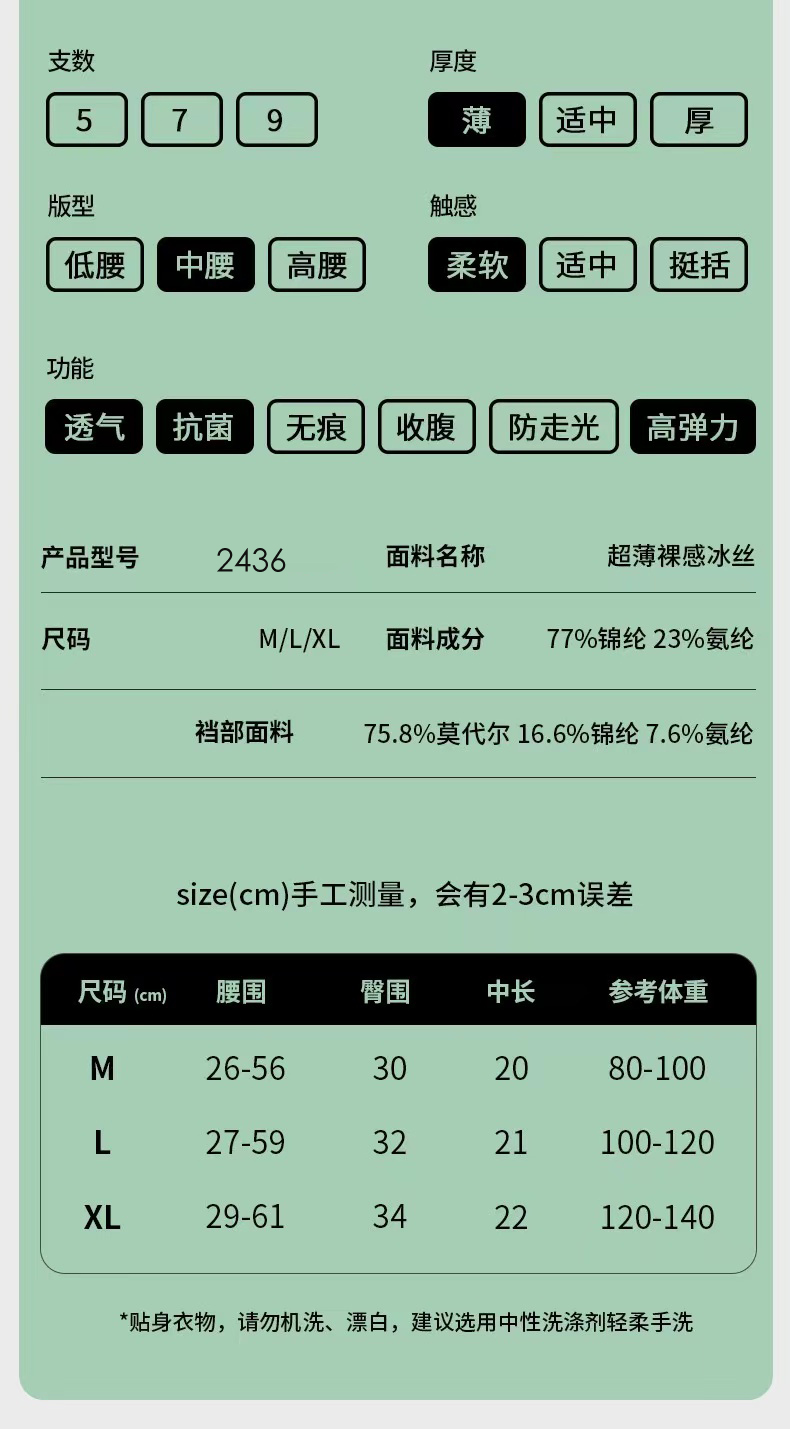 【秋鹭】2436款号超薄冰丝中腰女内裤1盒3条