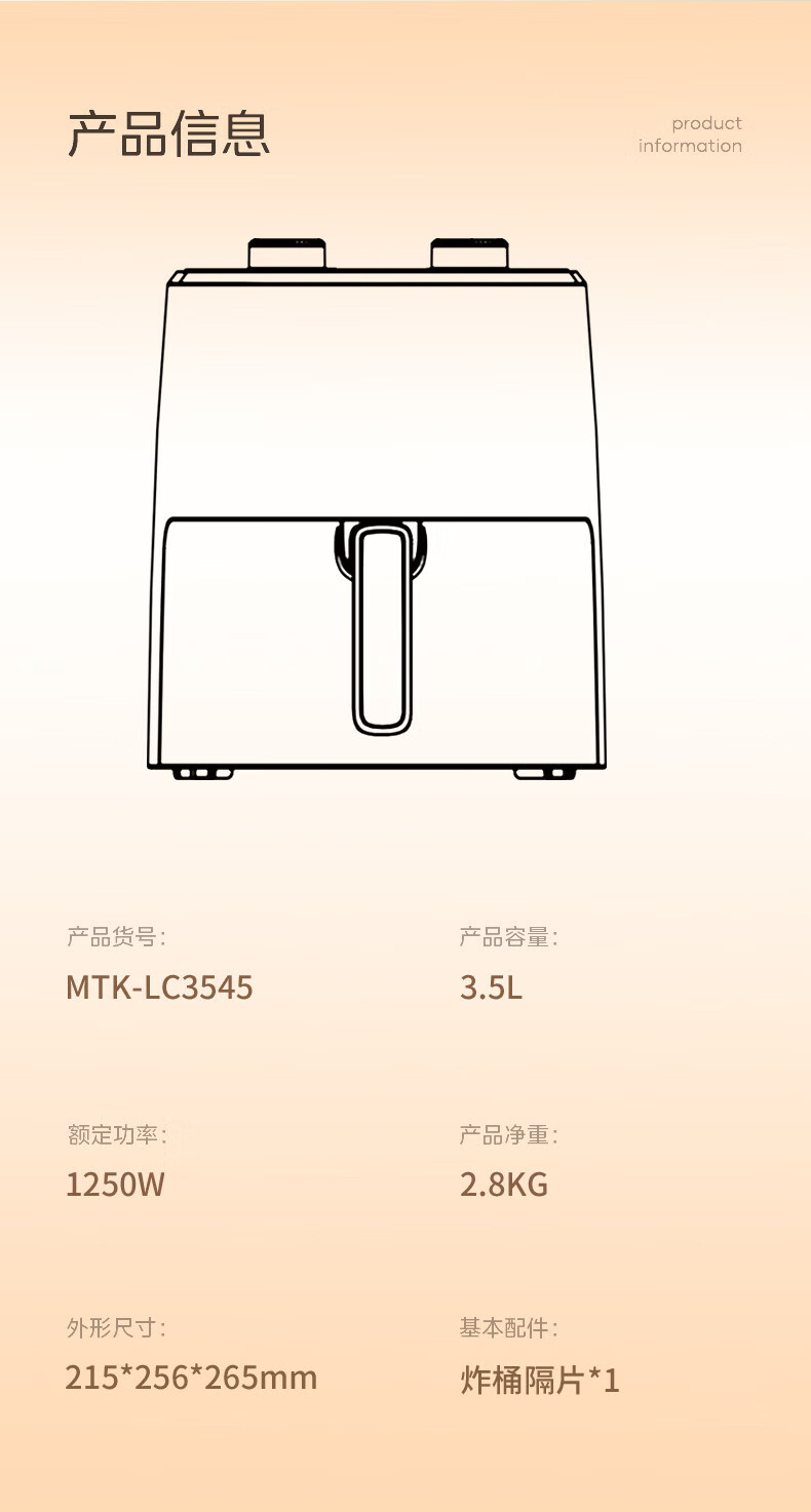 美菱3.5L空气炸锅 MTK-LC3545