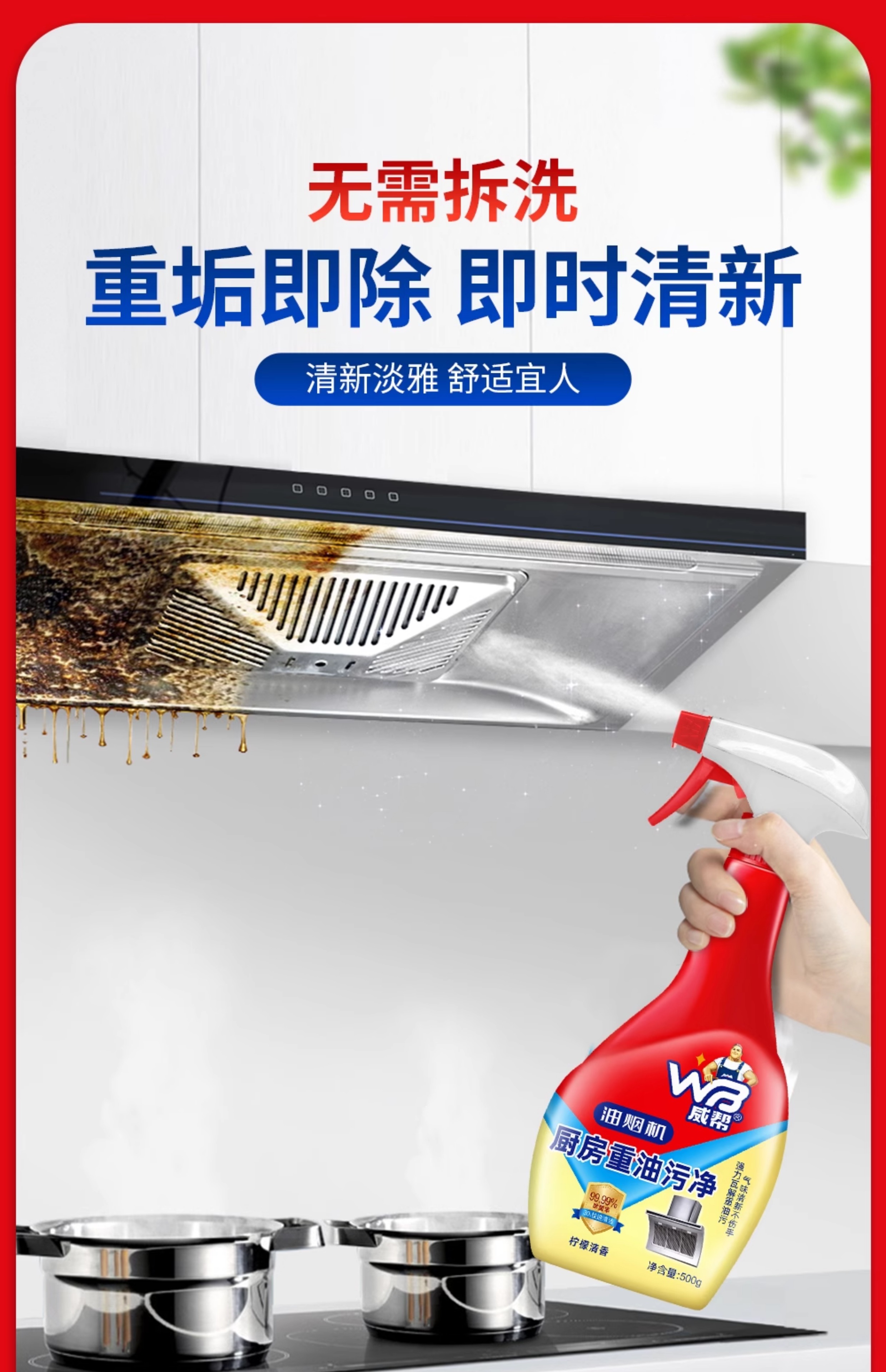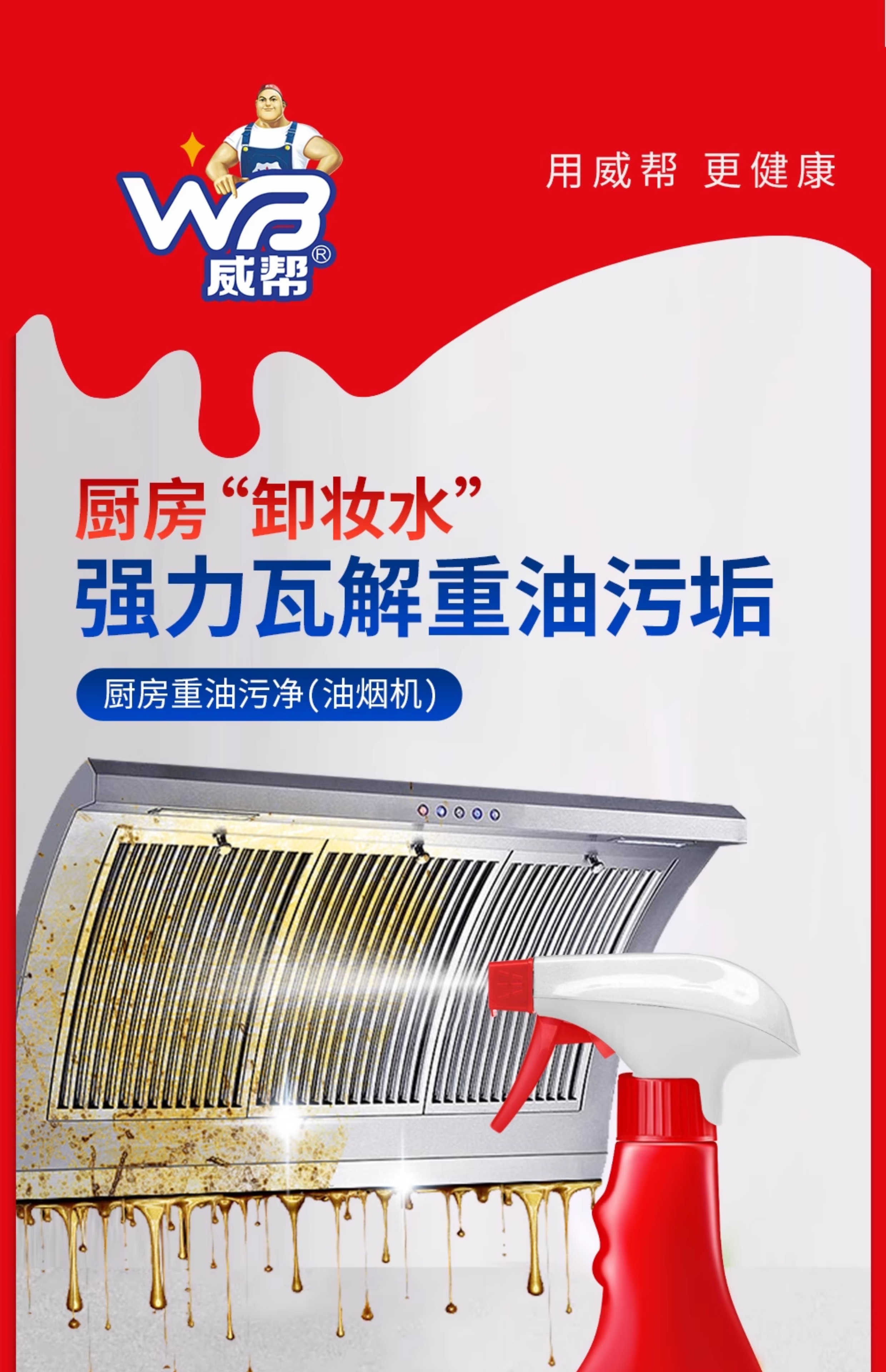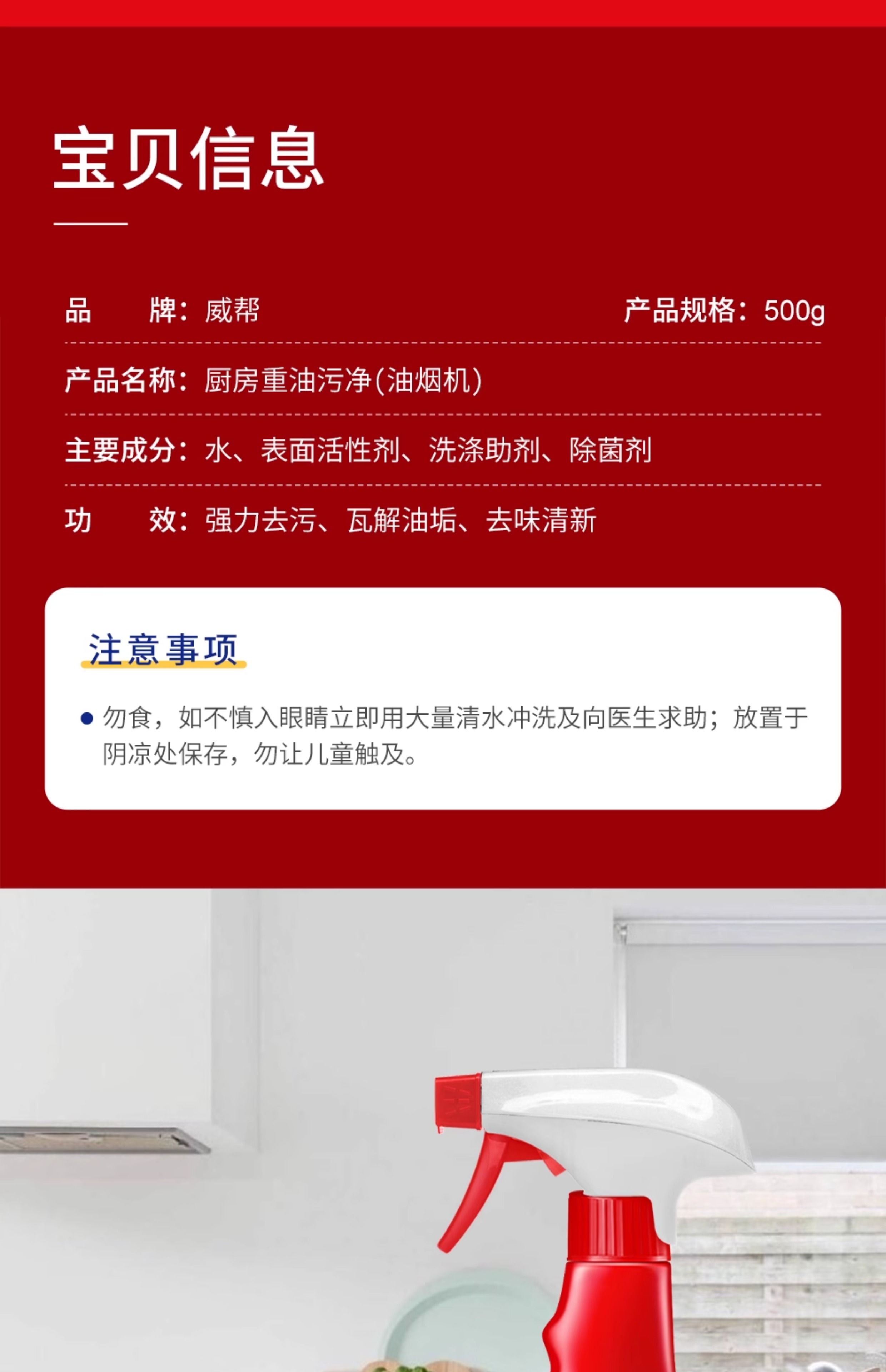 威帮500mL 厨房重油污净清洗油烟机强制去污3瓶装500g*3