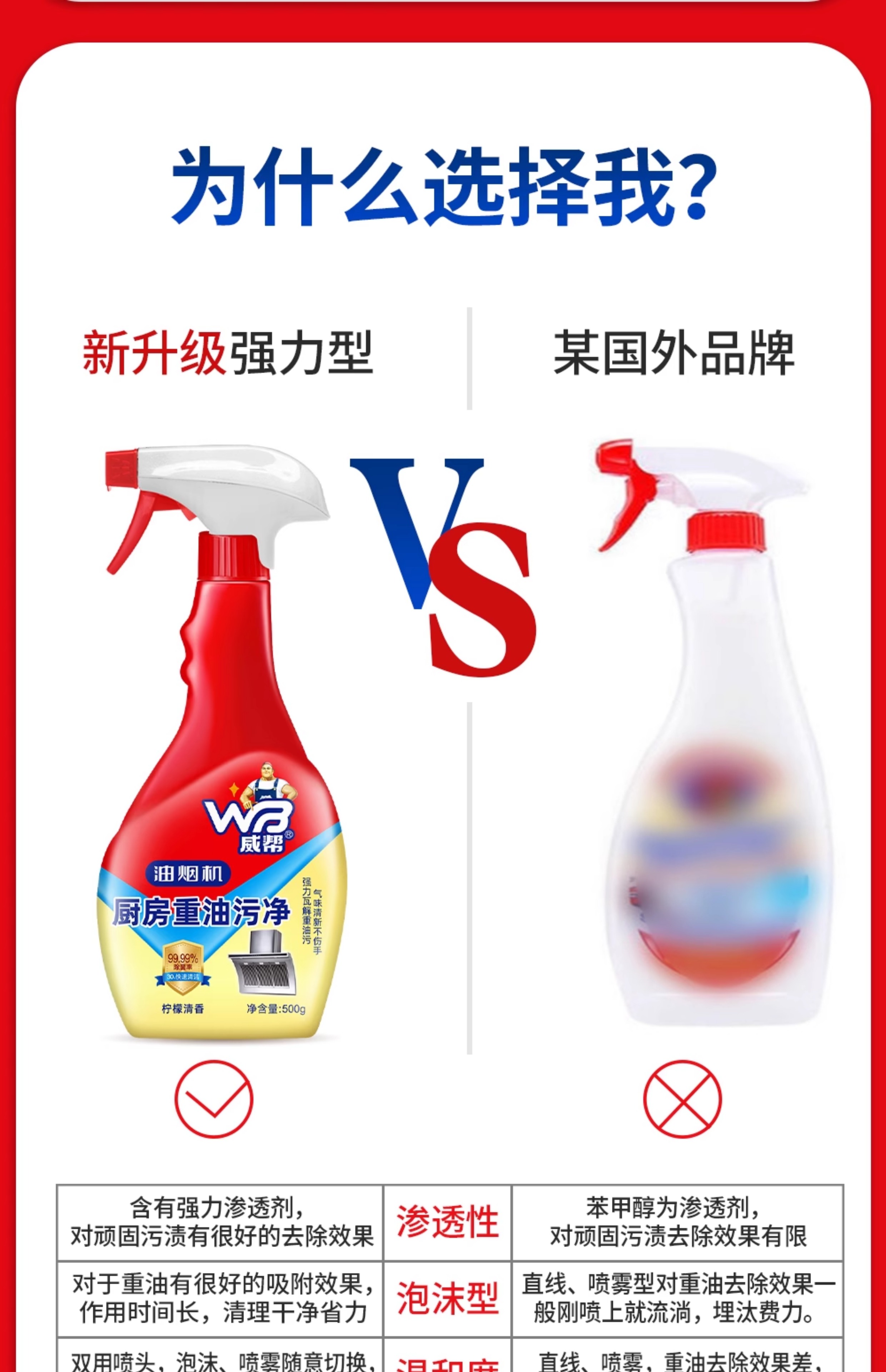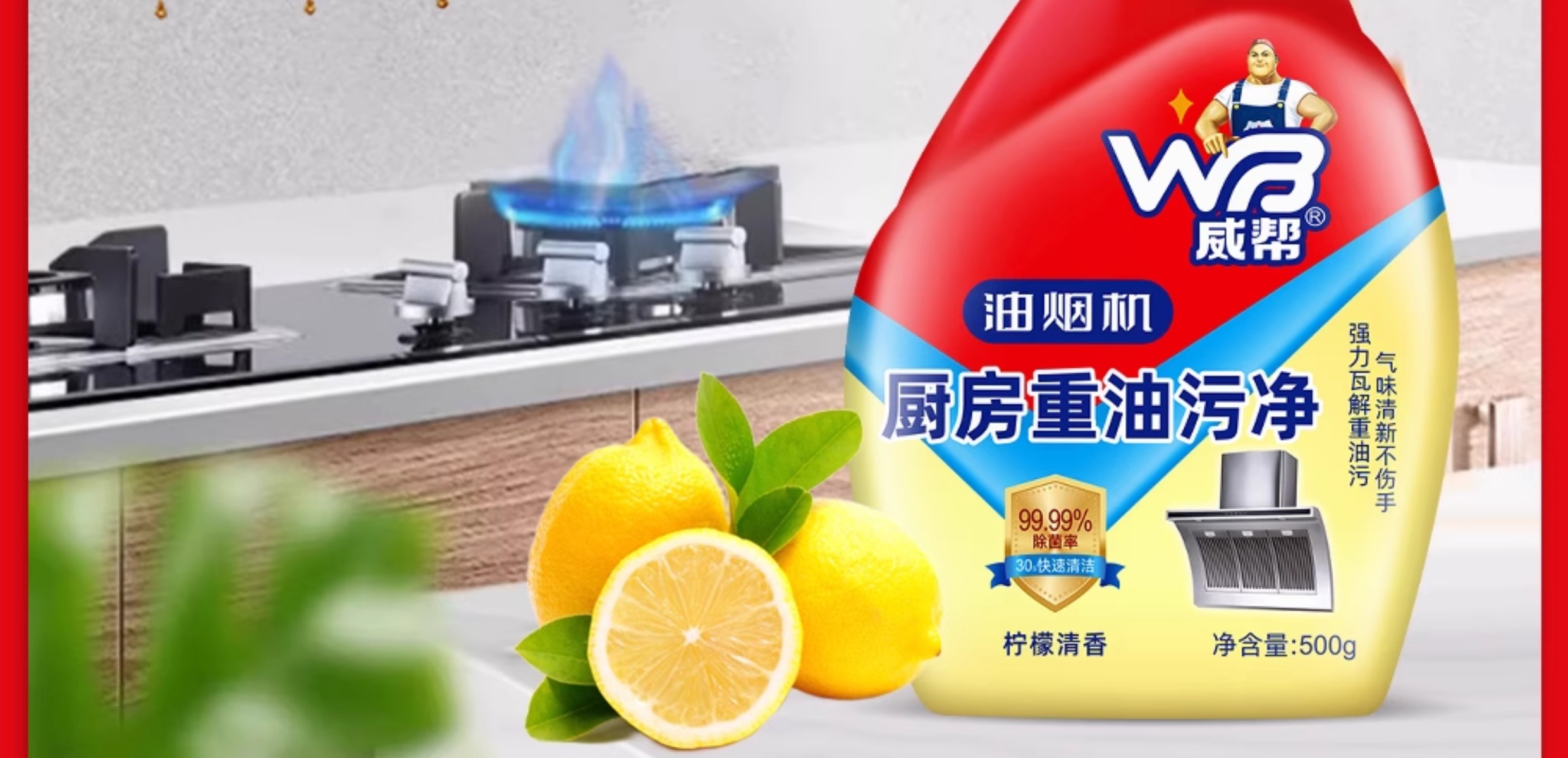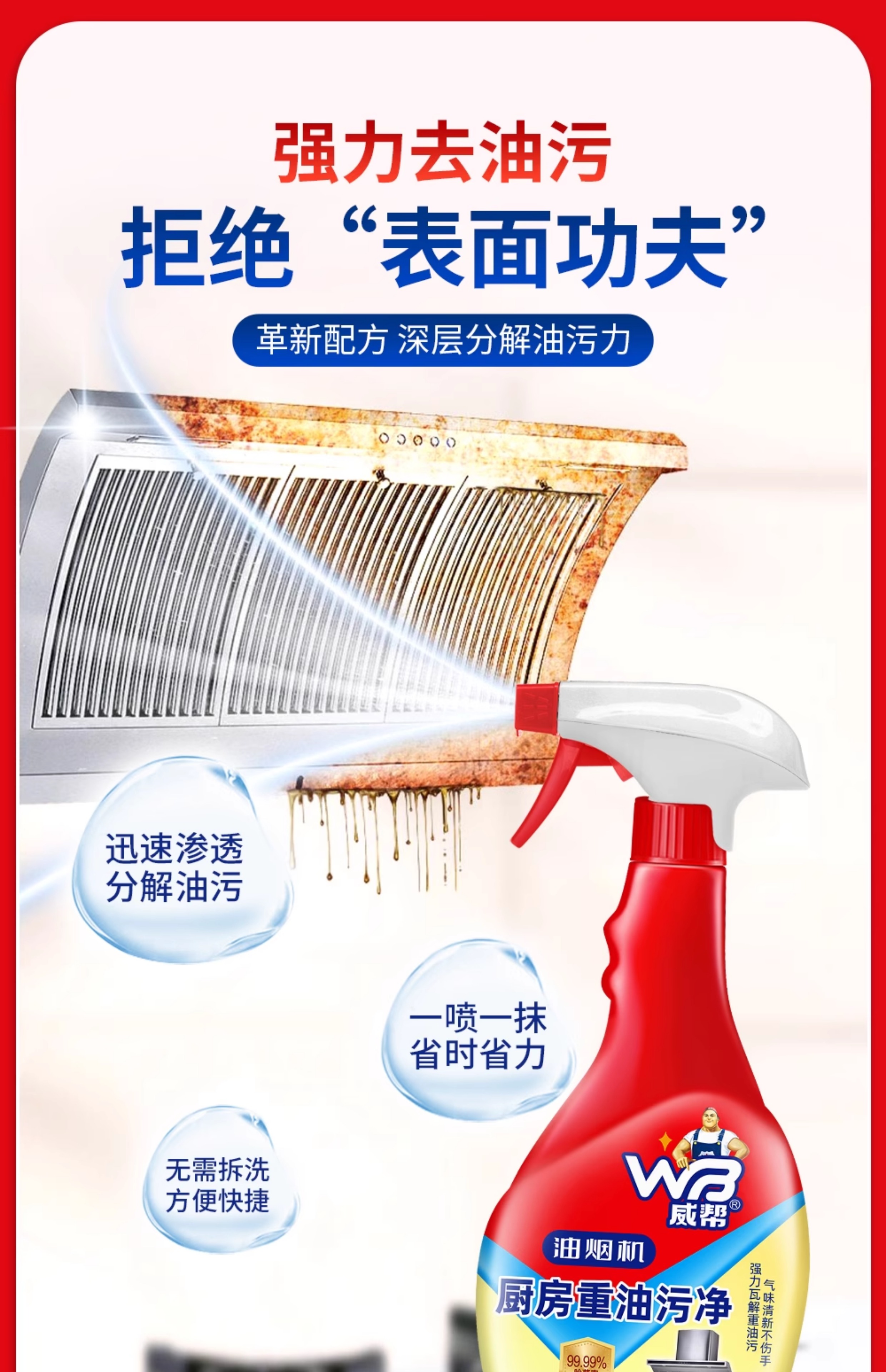 威帮500mL 厨房重油污净清洗油烟机强制去污3瓶装500g*3