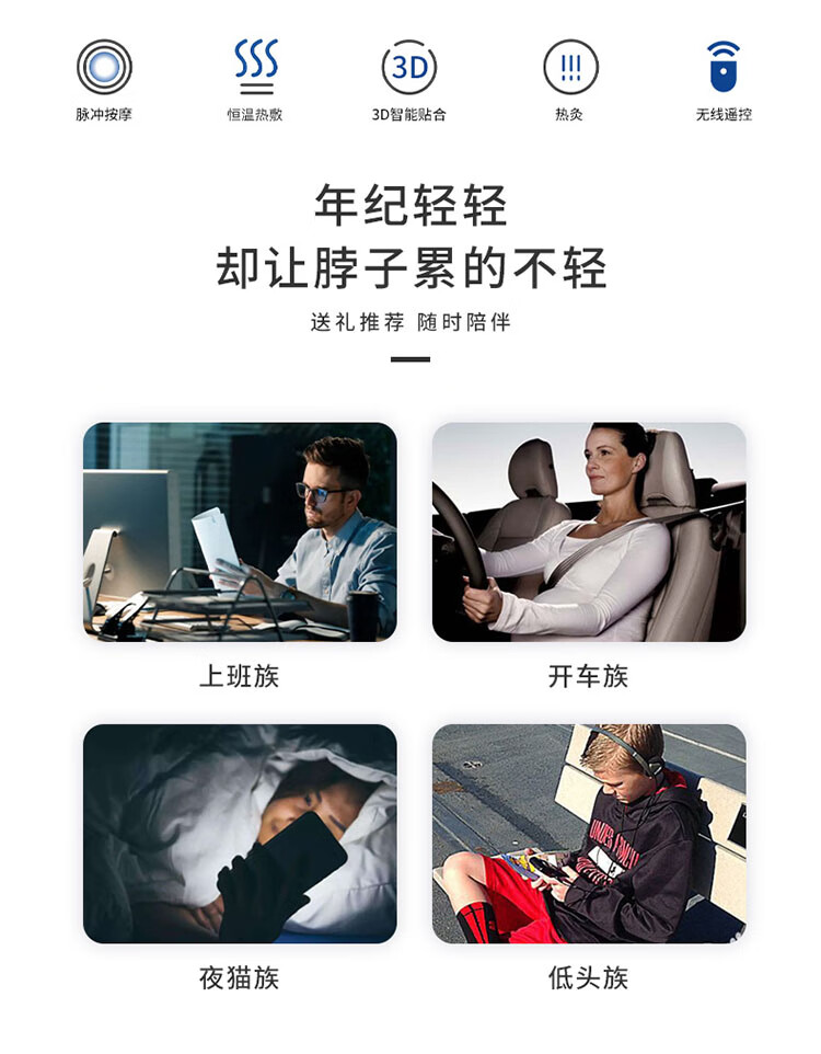 上亨(shangheng)颈椎按摩器 肩颈按摩器办公室家用多功能脖子肩颈部按摩疏通脊椎智能护颈仪按摩器 白色【无线遥控调节丨六种模式】SHZH-JZY001