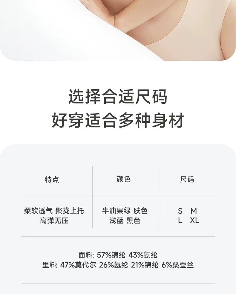 【秋鹭】款号2463超薄凉感蚕丝固定杯无痕文胸盒装