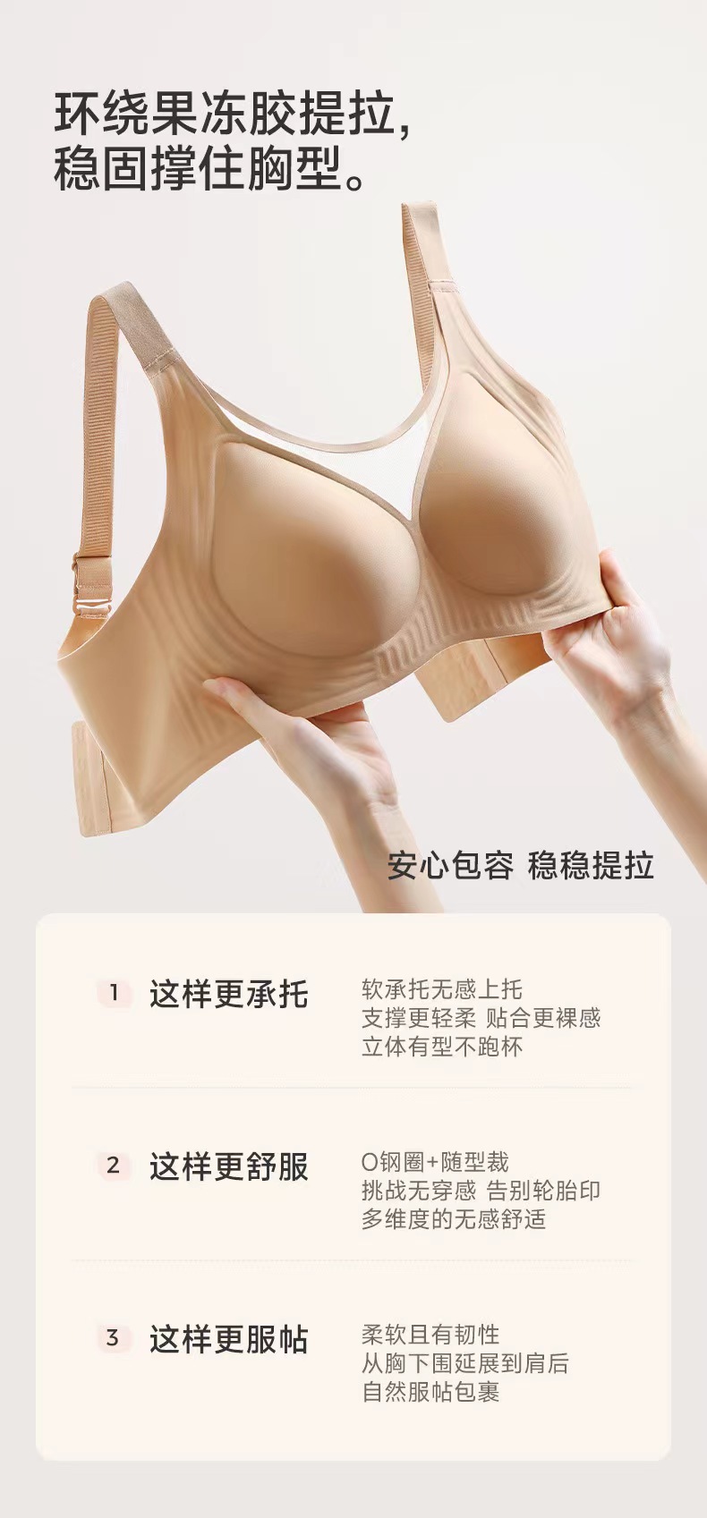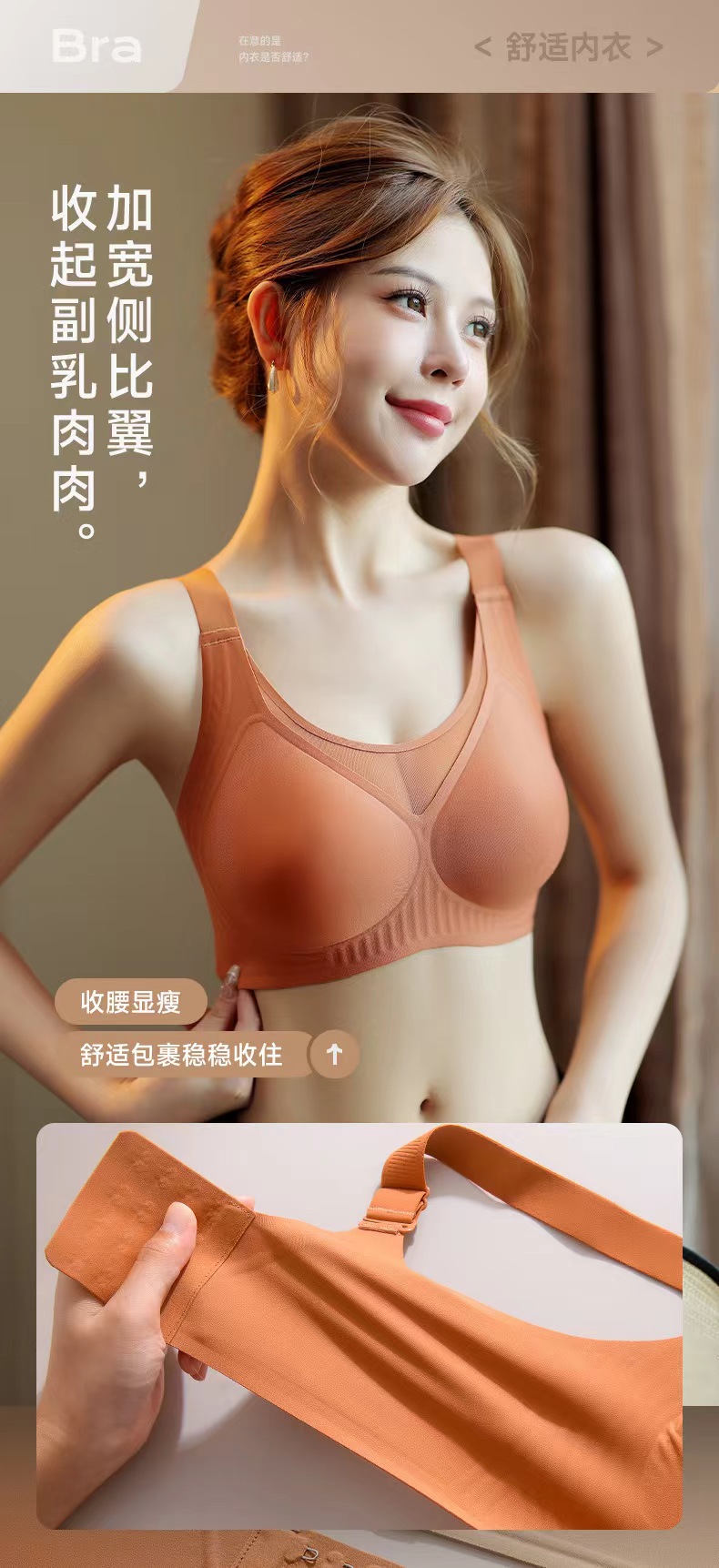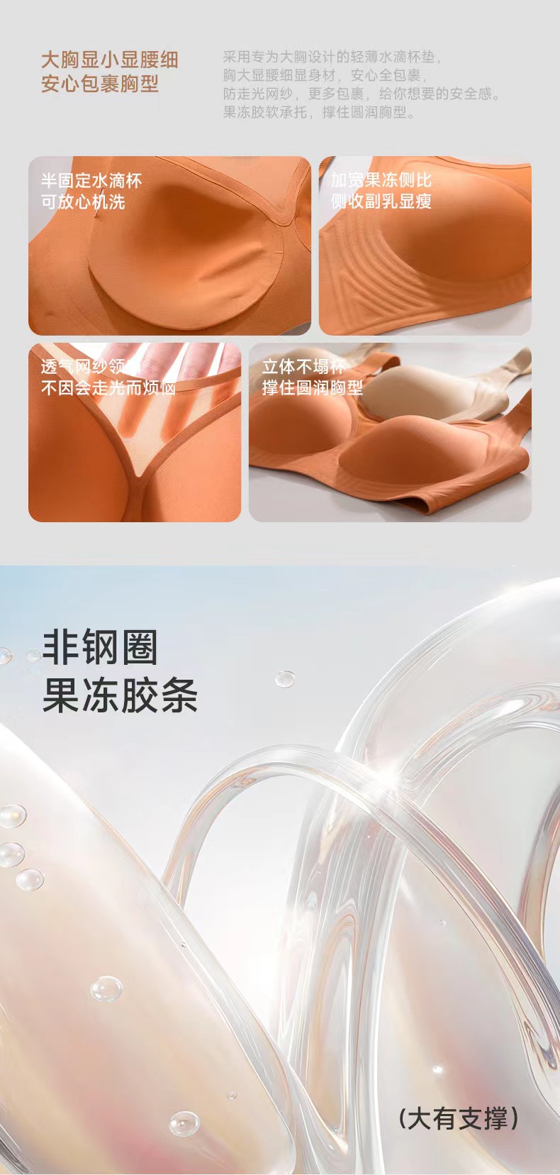 【秋鹭】款号2466果冻胶无钢圈大胸 显小大码文胸盒装