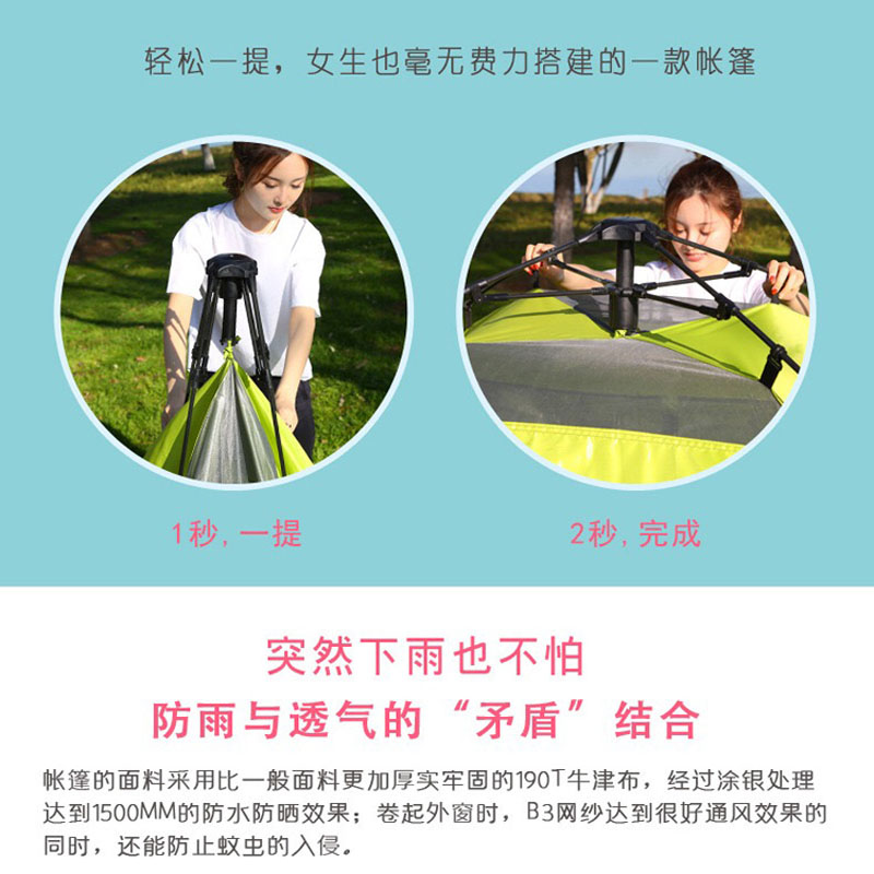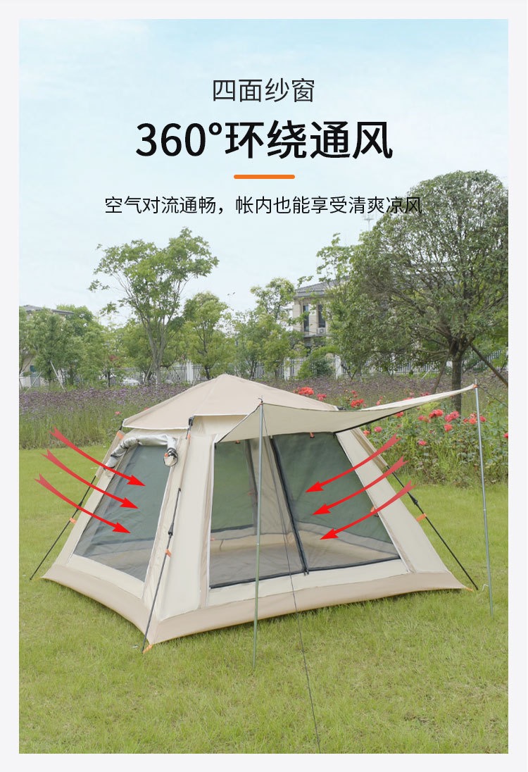 艾瑞迪帐篷户外便携式野外露营公园休闲3-4人天幕帐篷Q-015