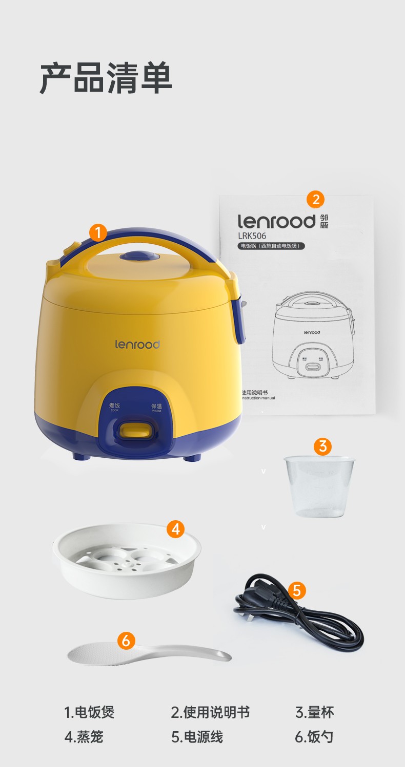邻鹿 电饭煲小型迷你2升宿舍煮饭煲汤多功能米饭锅蒸饭器家用单人饭煲1-3人LRK-506