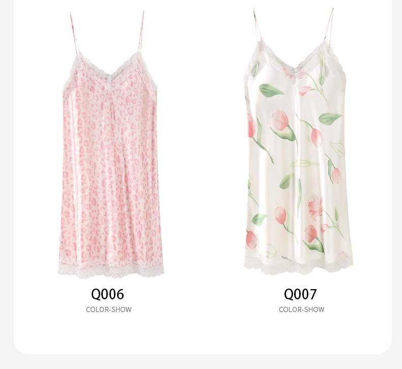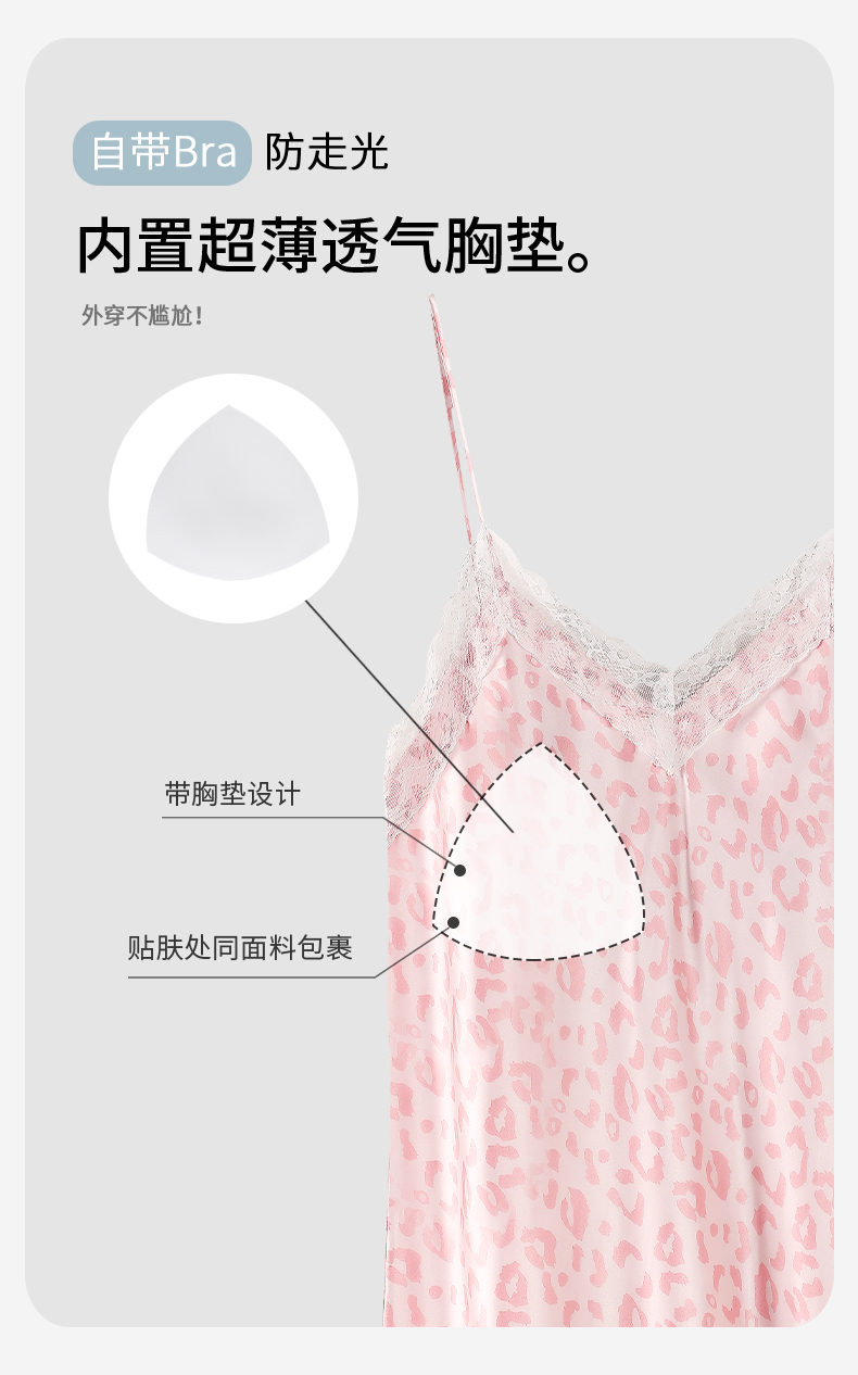 【秋鹭】款号Q006冰丝带胸垫高级感蕾丝吊带睡裙家居服