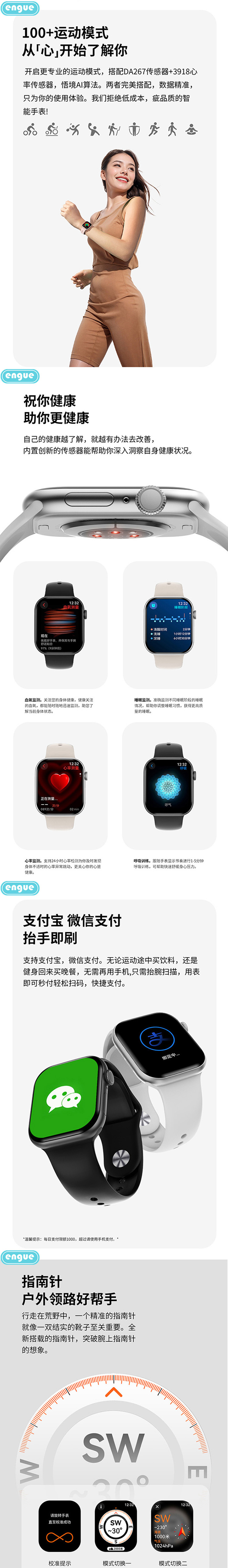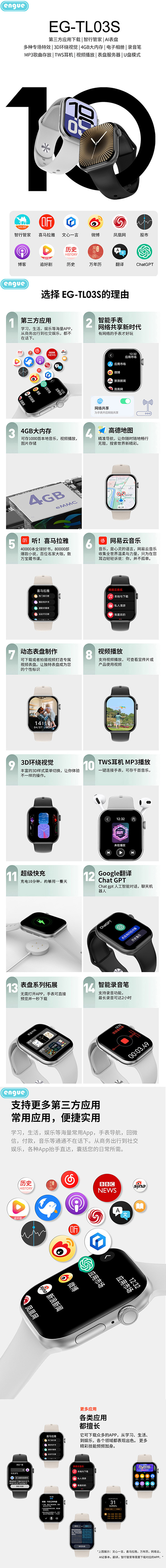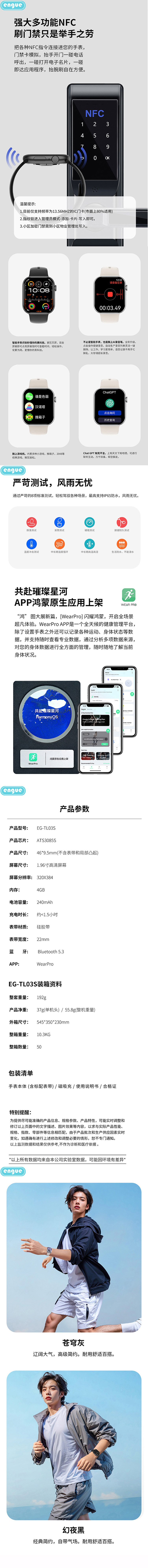 engue恩谷全触屏心率智能手表EG-TL03S
