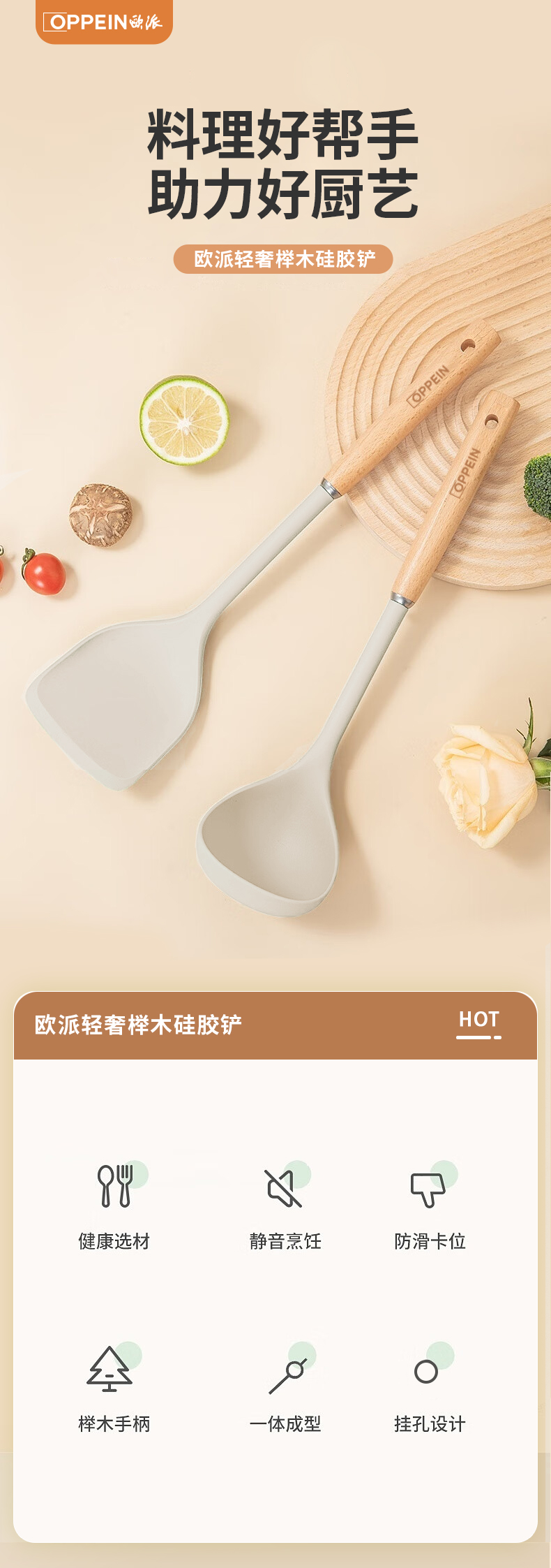 欧派OP3GC19轻奢榉木硅胶铲