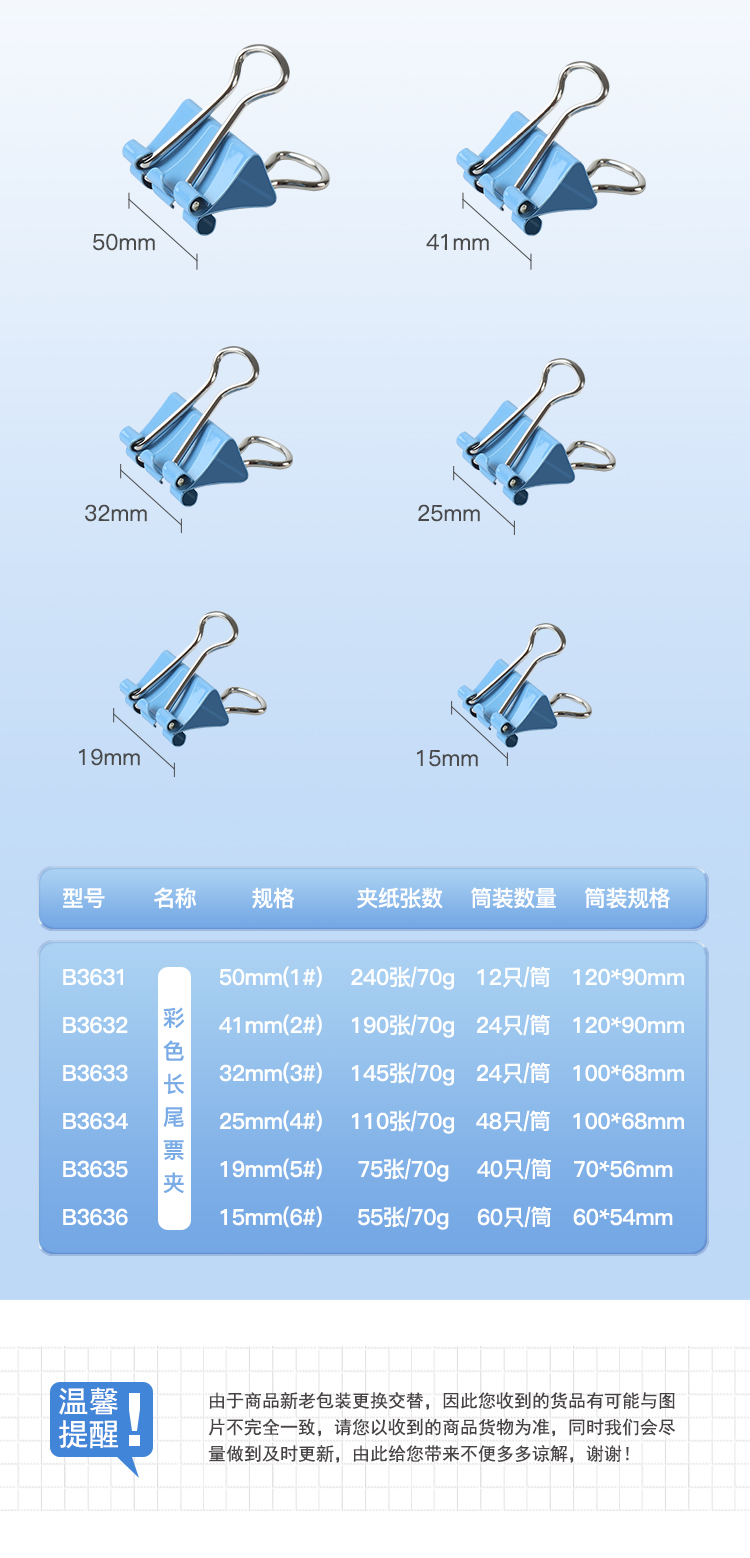 齐心 B3632长尾票夹 2# 41mm 24只/筒