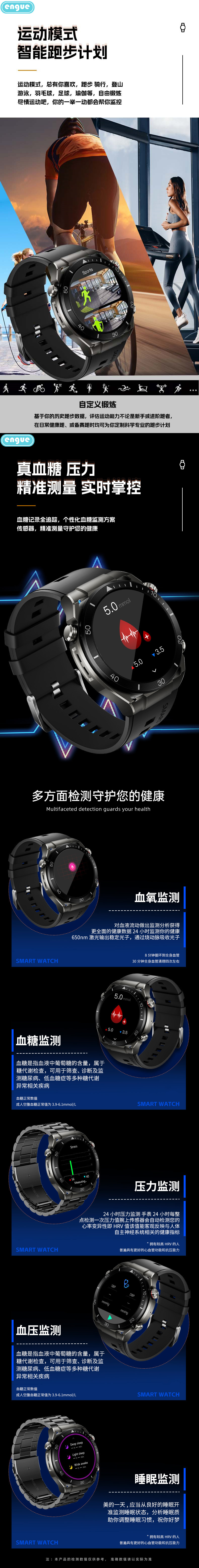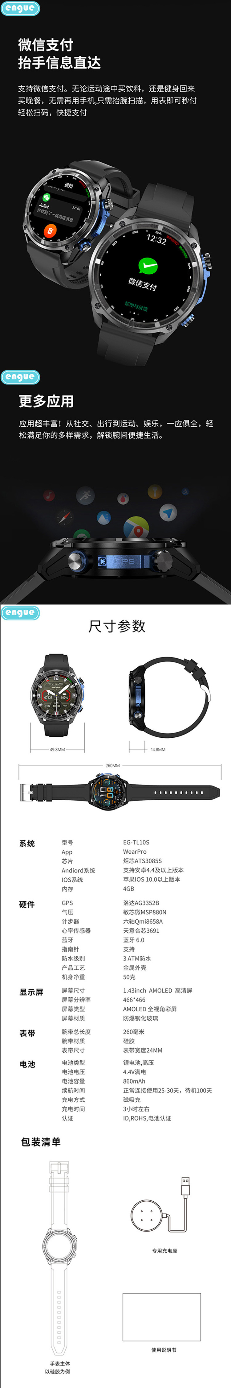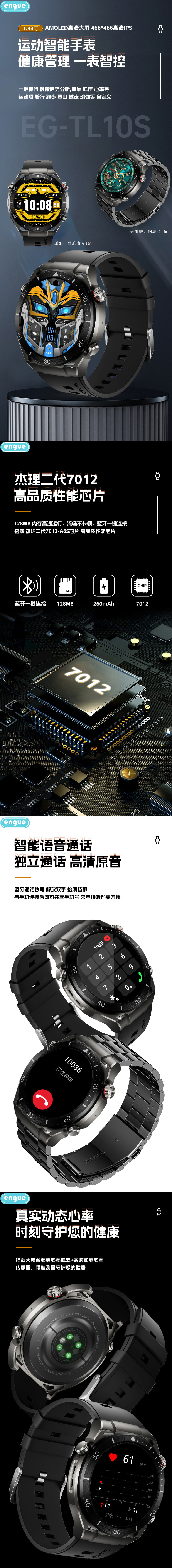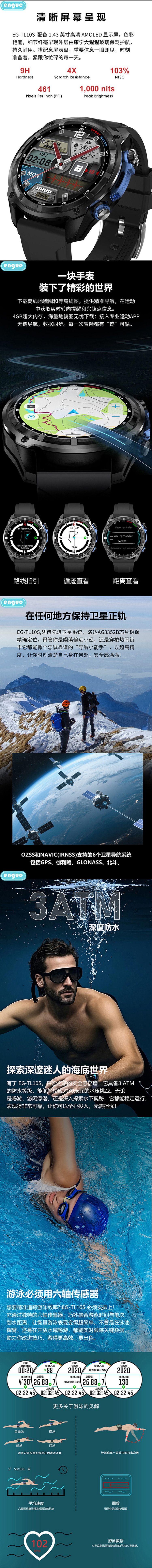 engue恩谷143AMOLED高清真血氧智能手表EG-TL10S