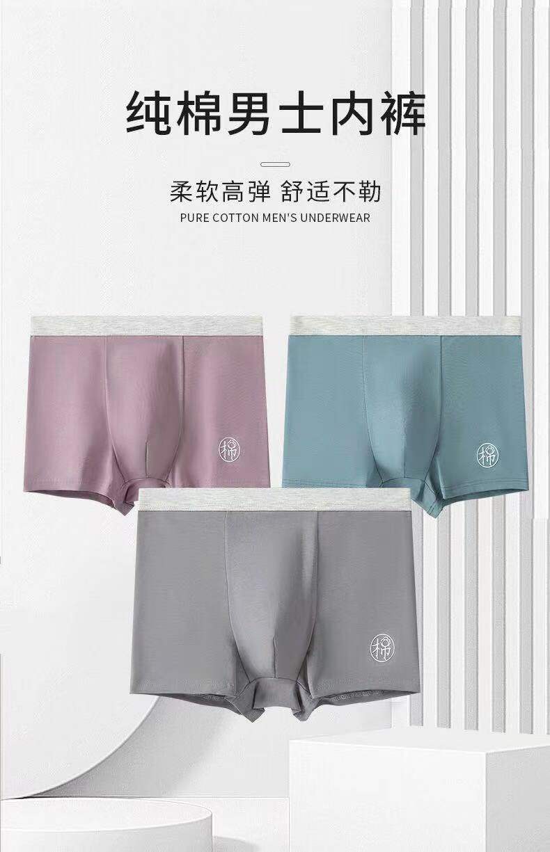 【秋鹭】2219款男士纯棉健康舒适品质平角内裤(1盒3条)随机