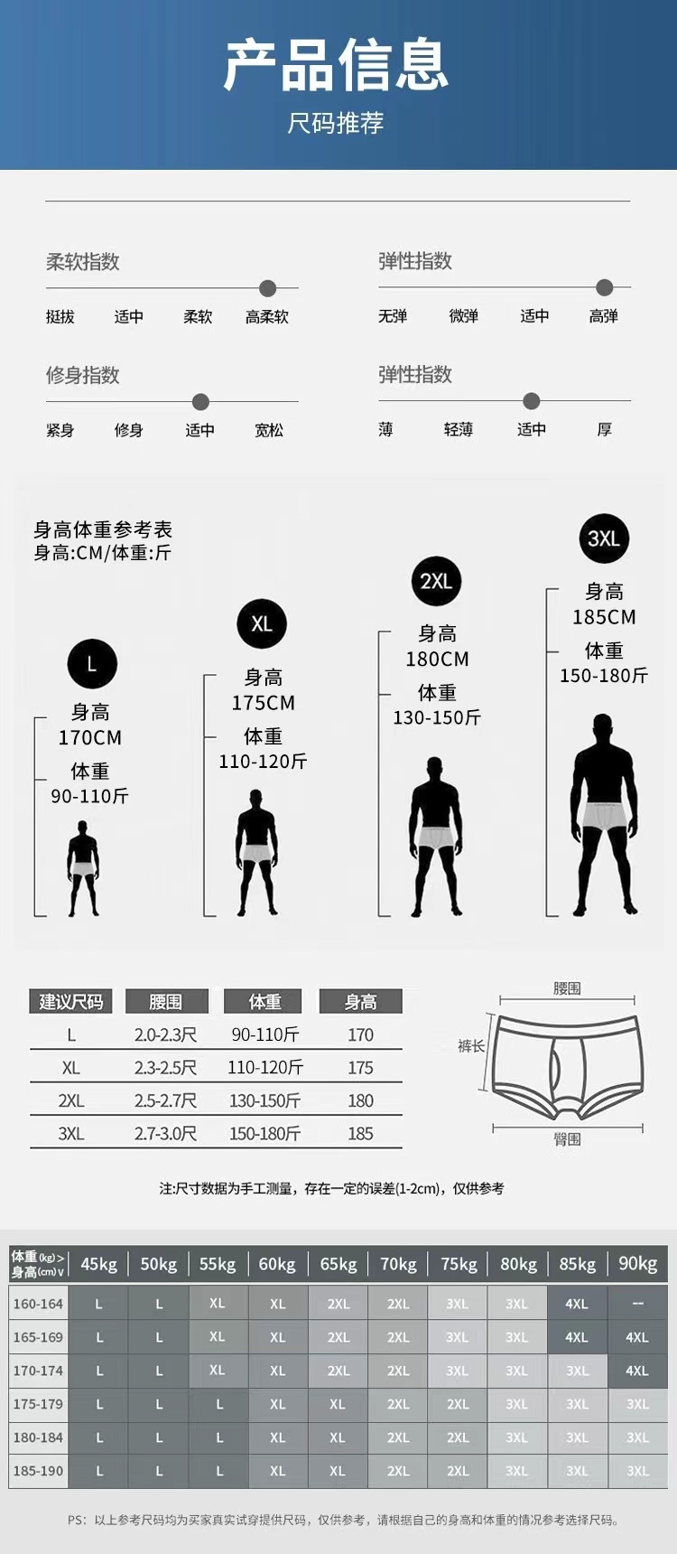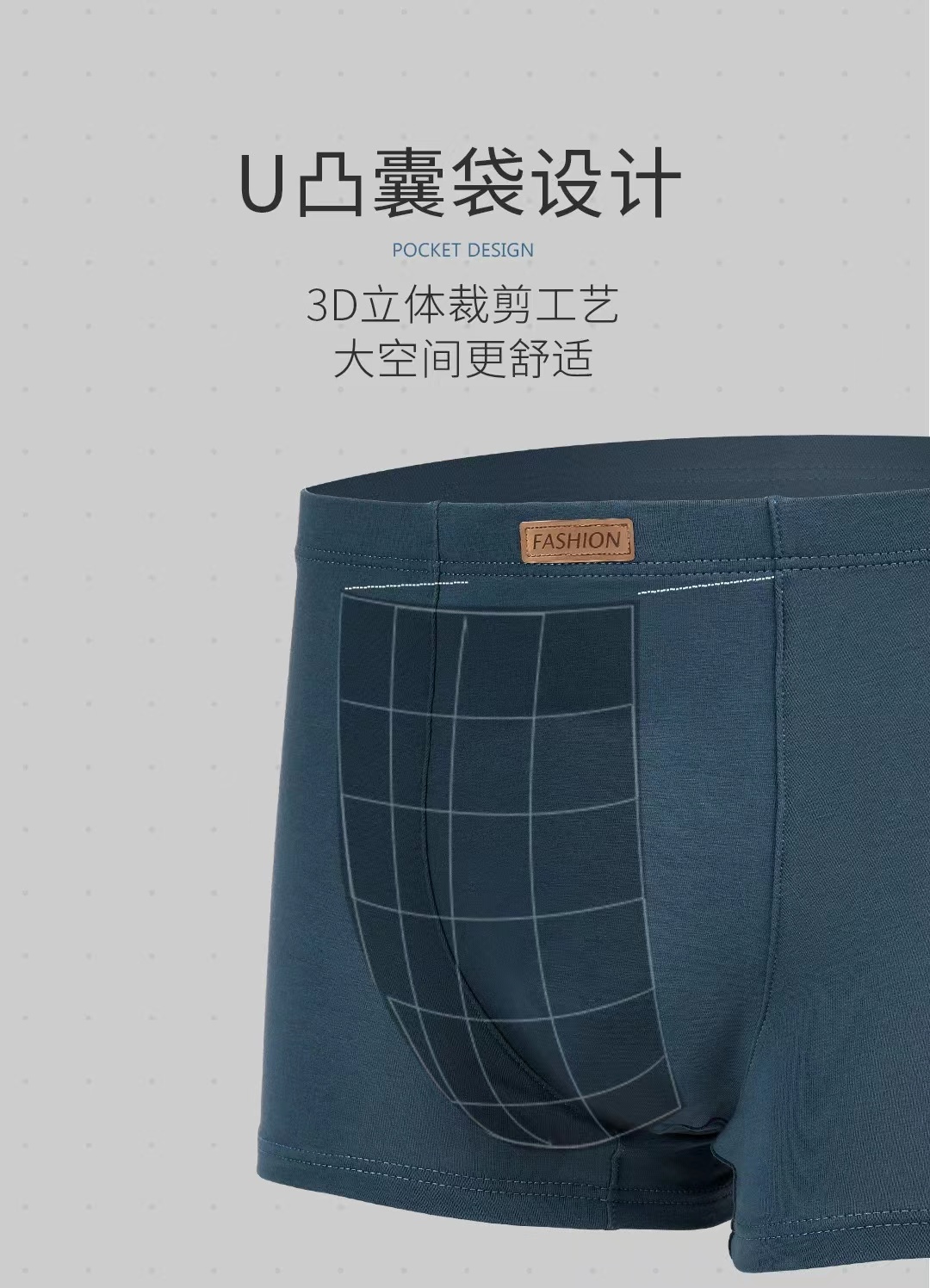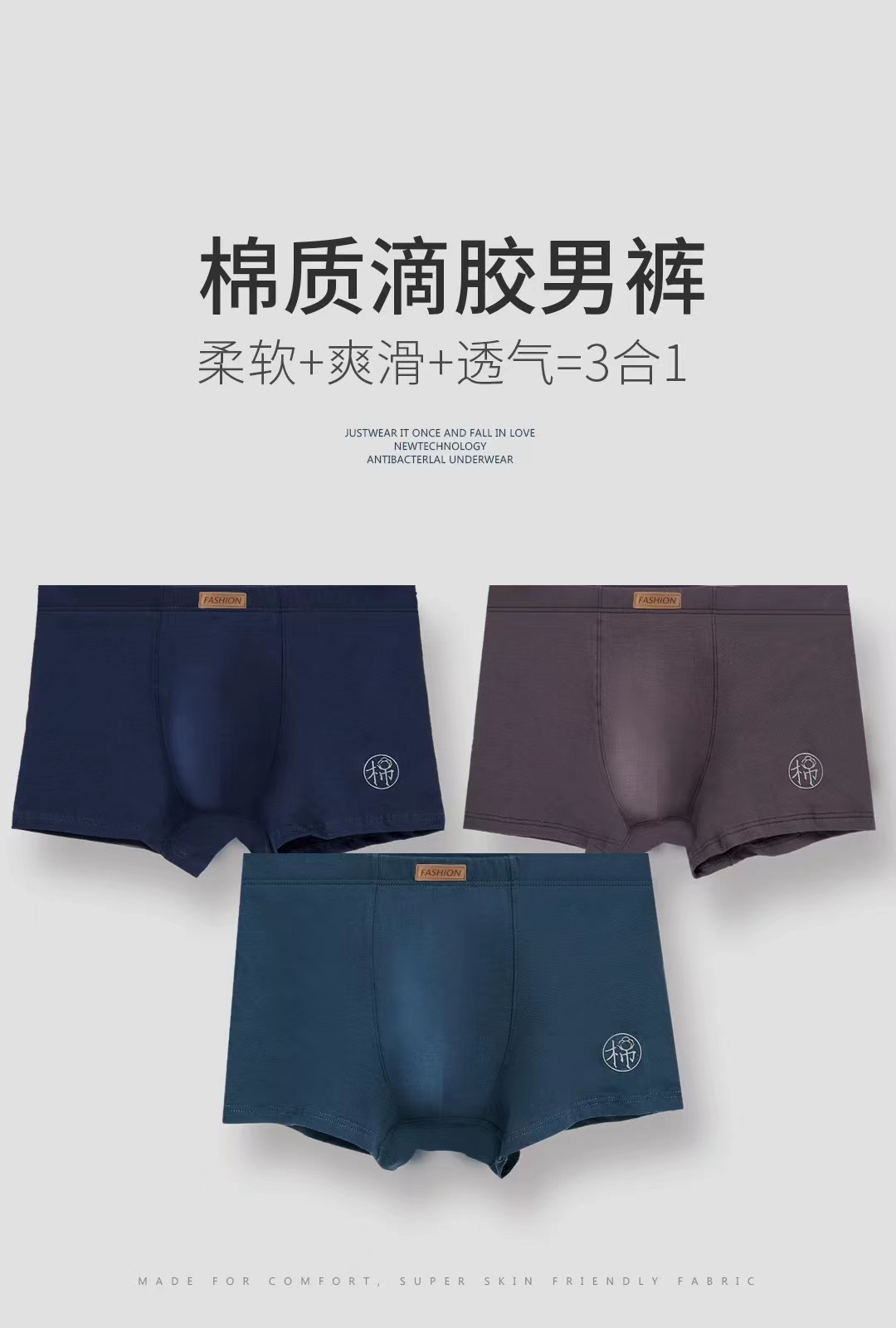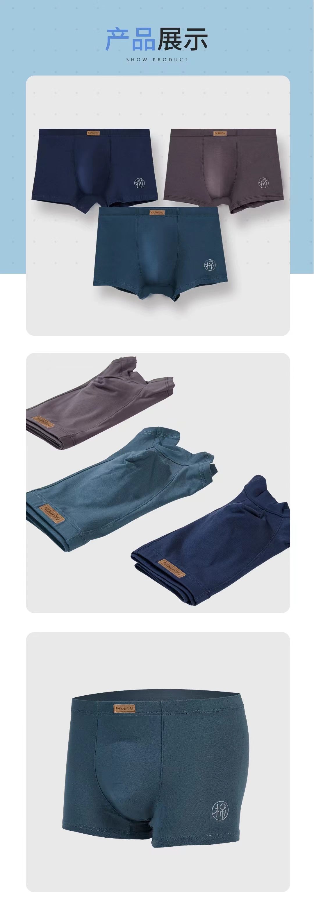 【秋鹭】3101款男士纯棉亲肤平角内裤(1盒3条)