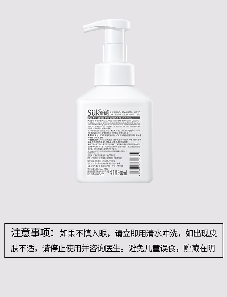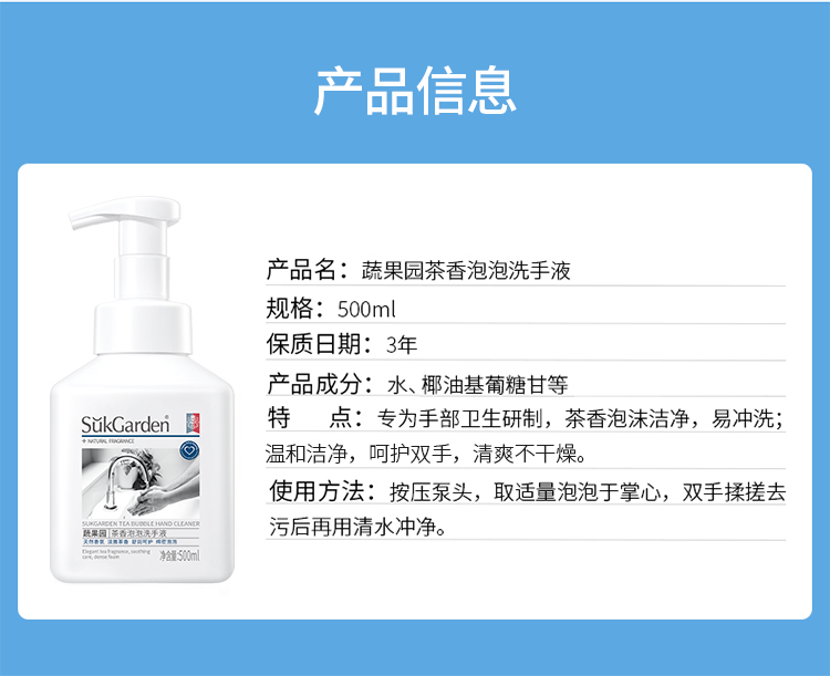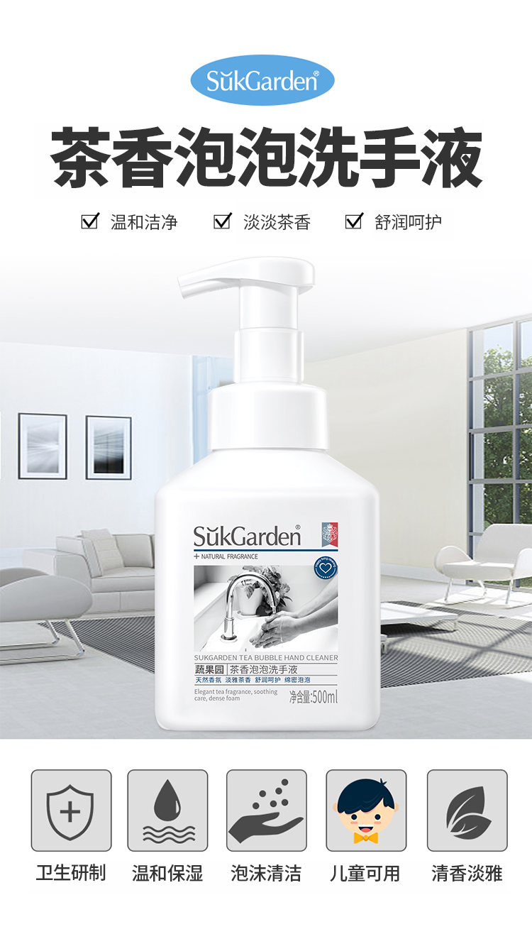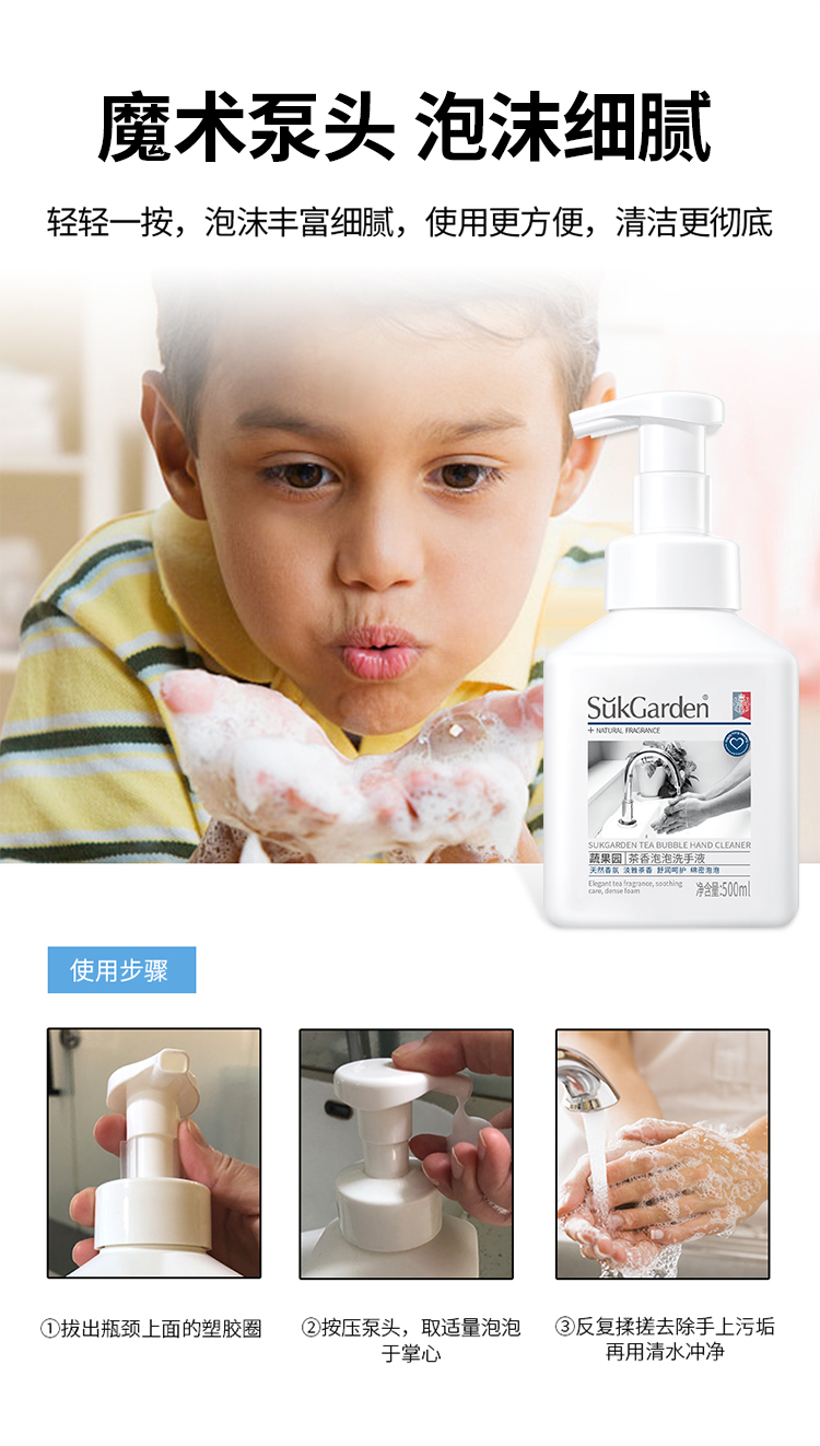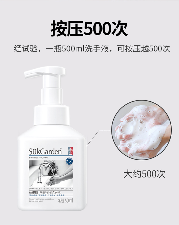 【洗手液组合】SukGarden蔬果园茶香泡泡洗手液500ml*3瓶