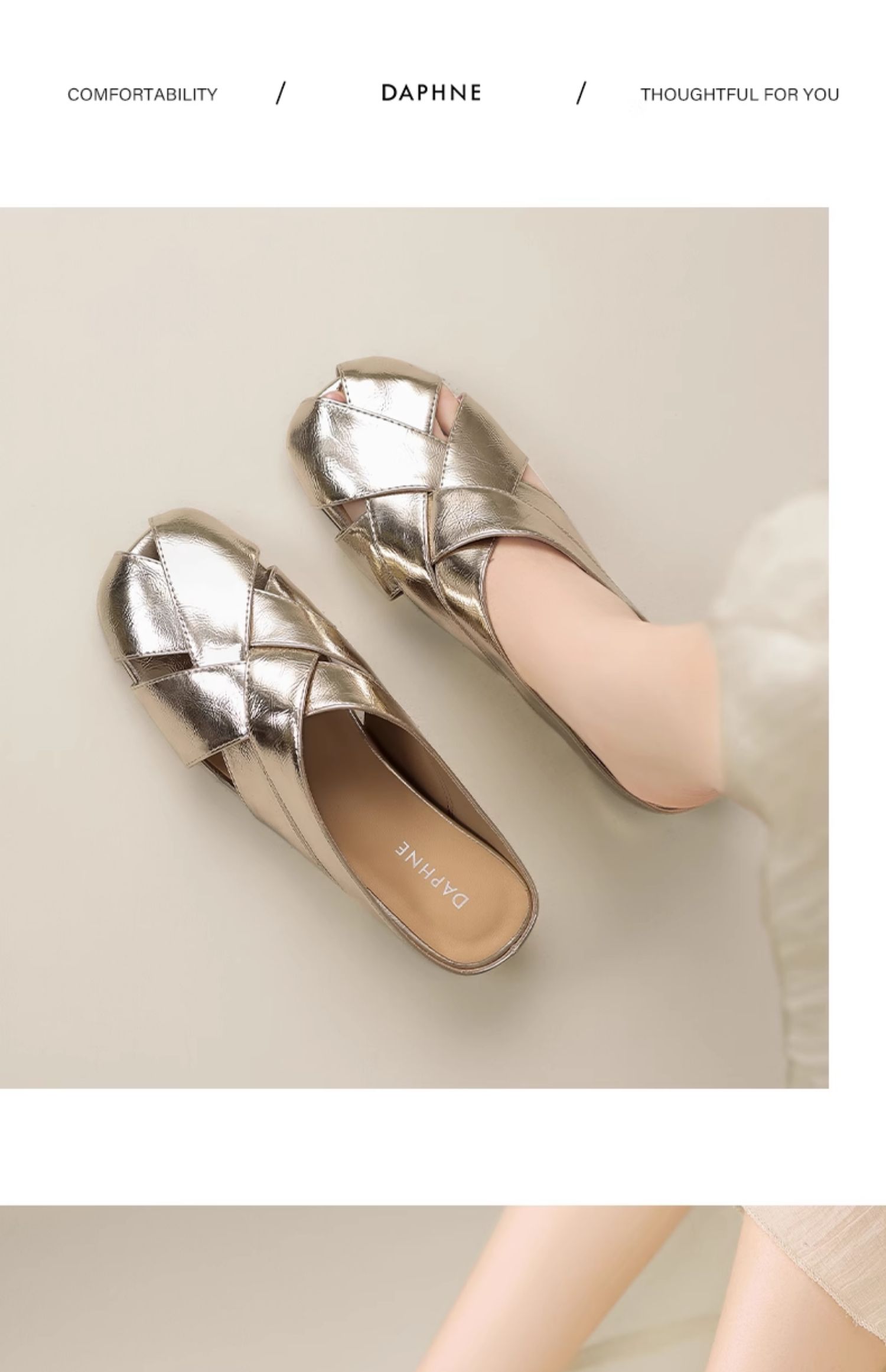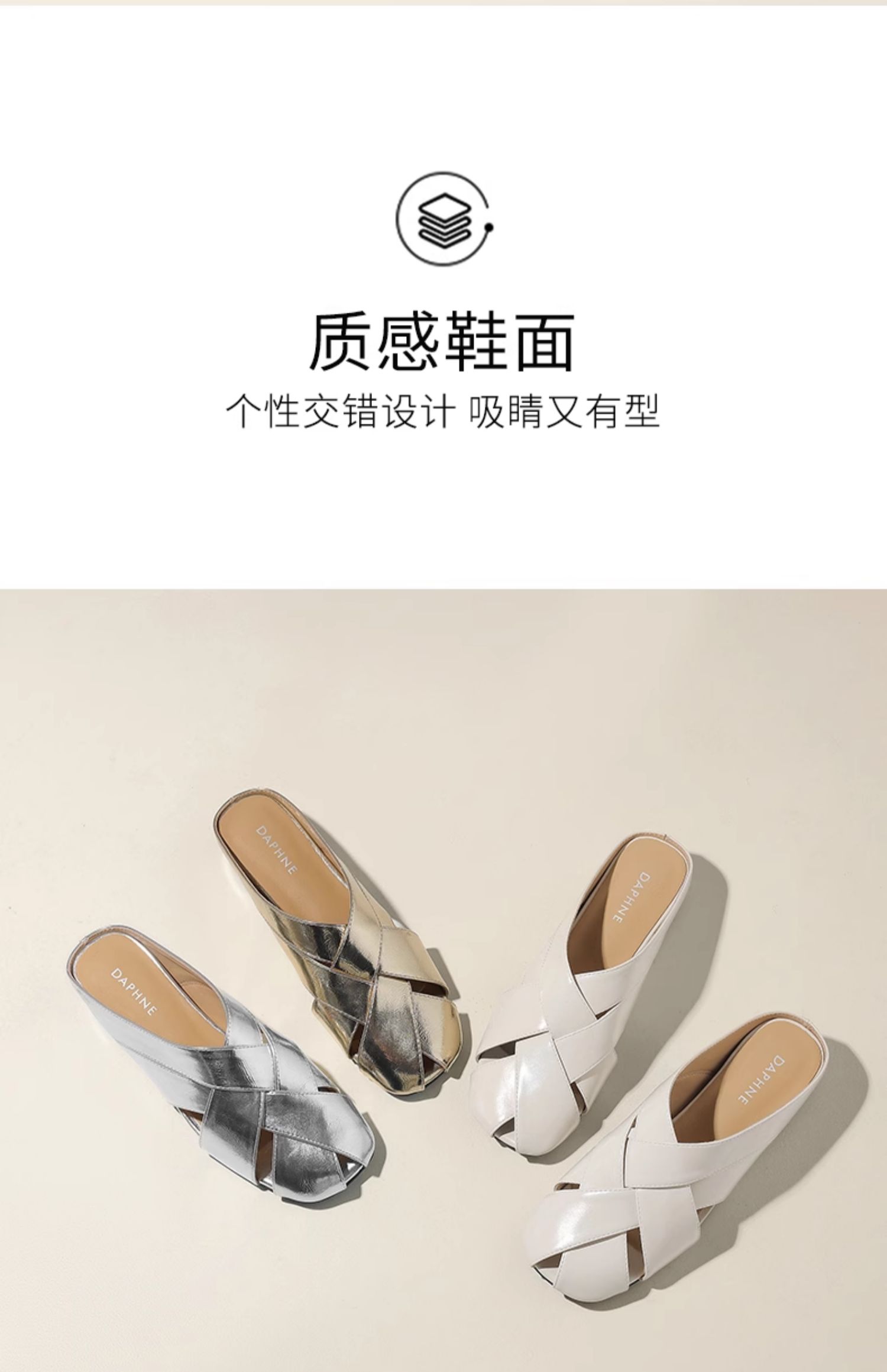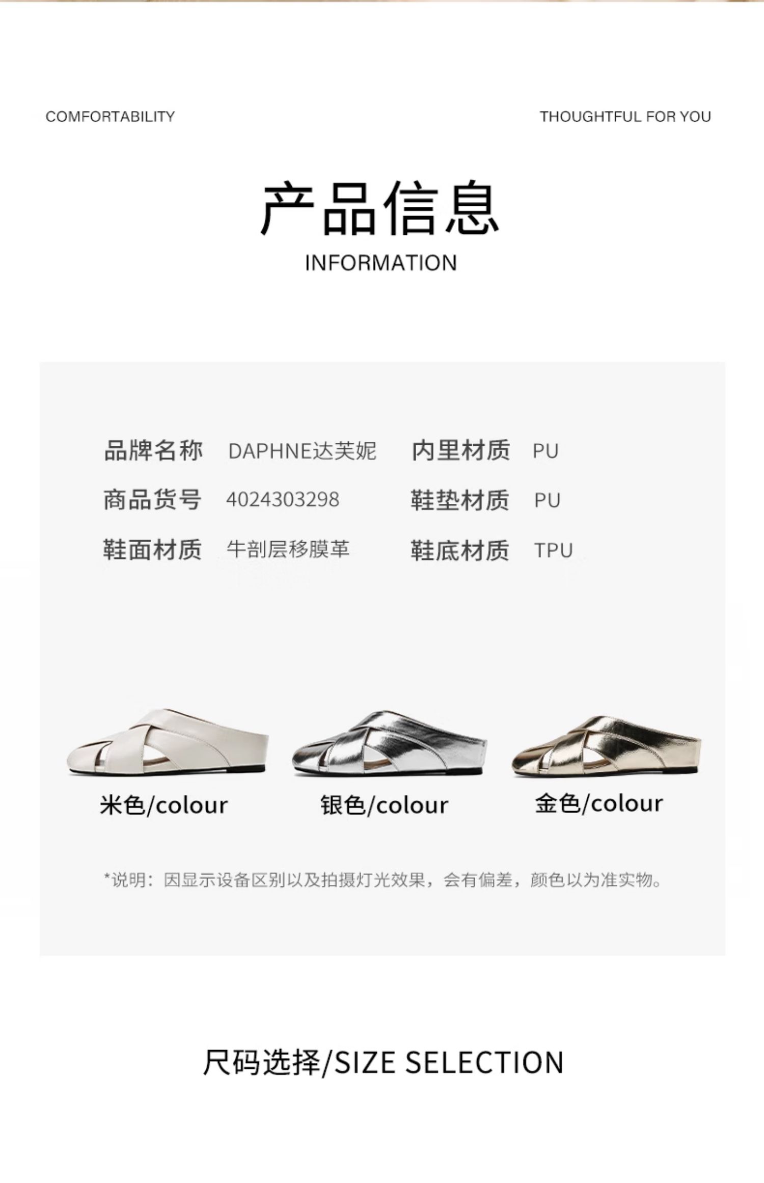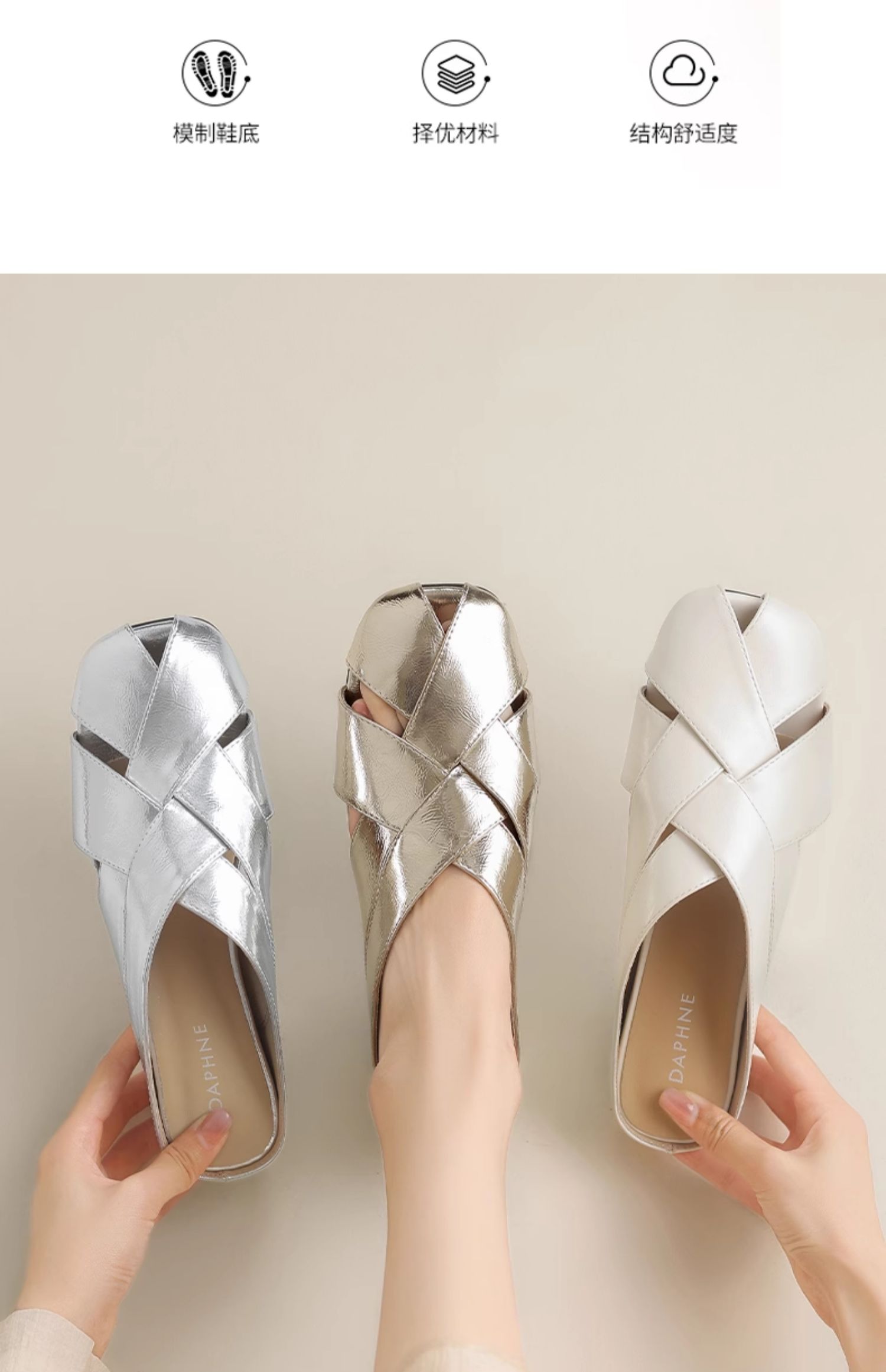 达芙妮镂空罗马包头拖鞋女新款夏季半拖鞋女鞋4024303298