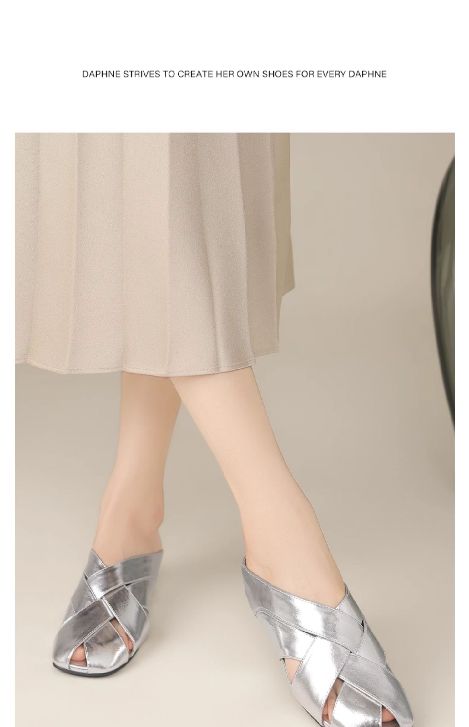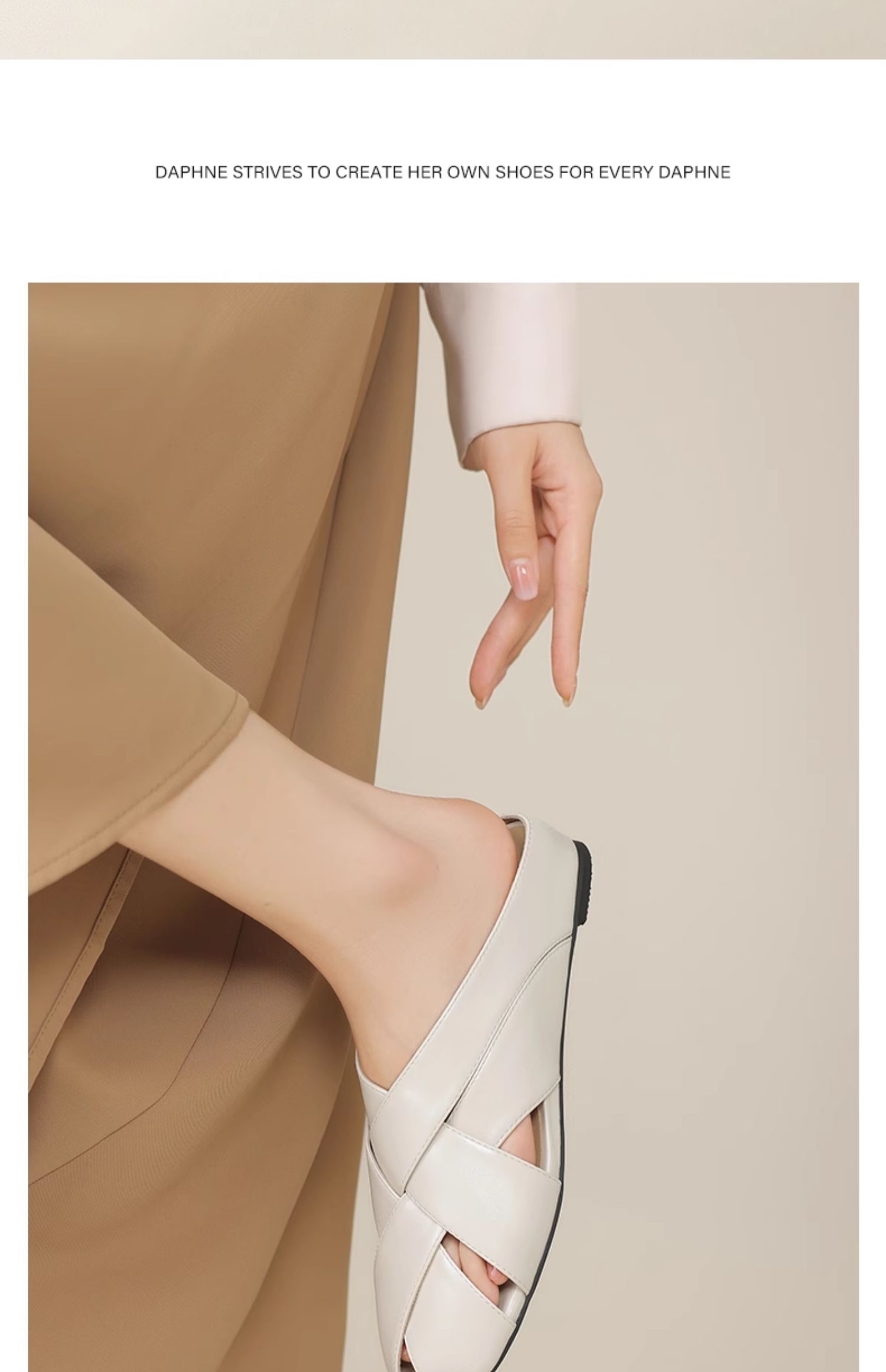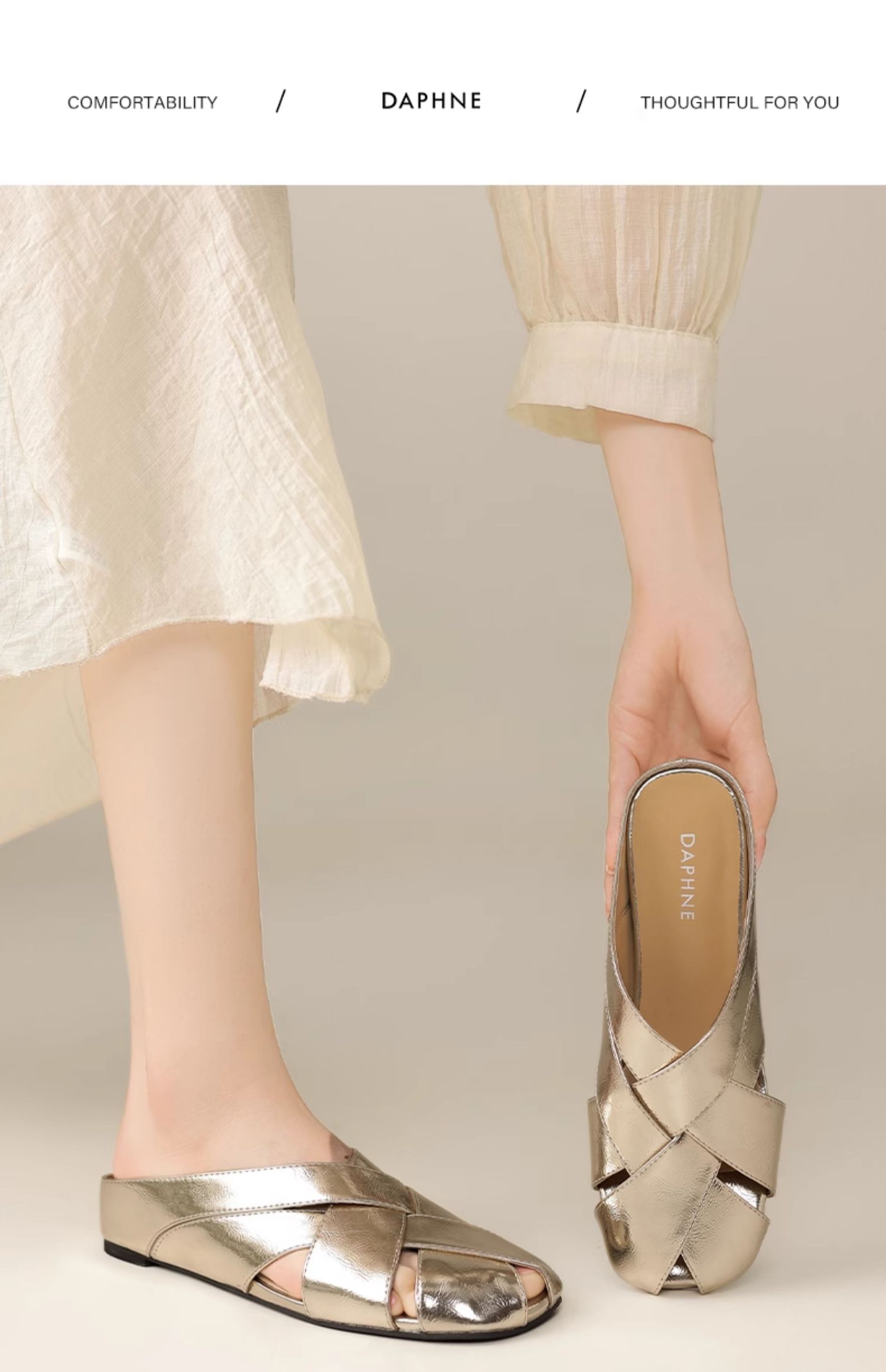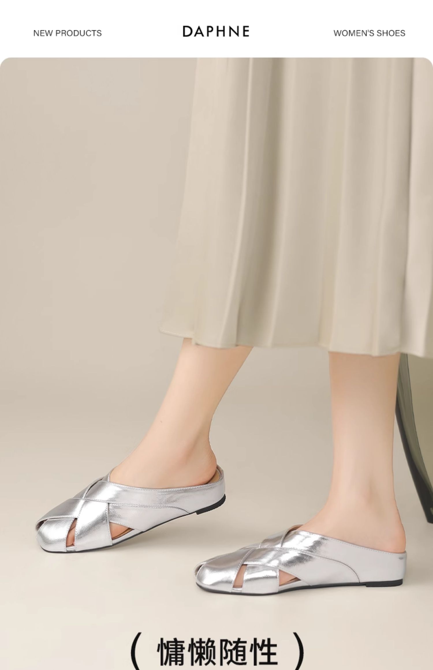 达芙妮镂空罗马包头拖鞋女新款夏季半拖鞋女鞋4024303298