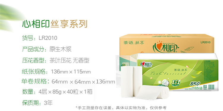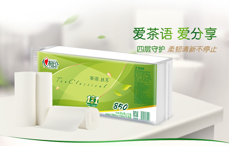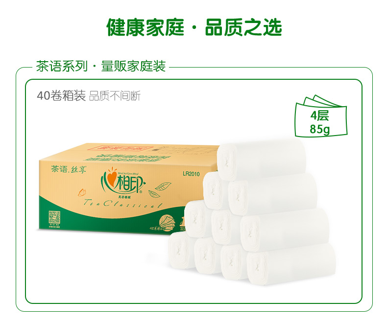 心相印茶语丝享系列85克10卷4提装4层无芯卫生纸