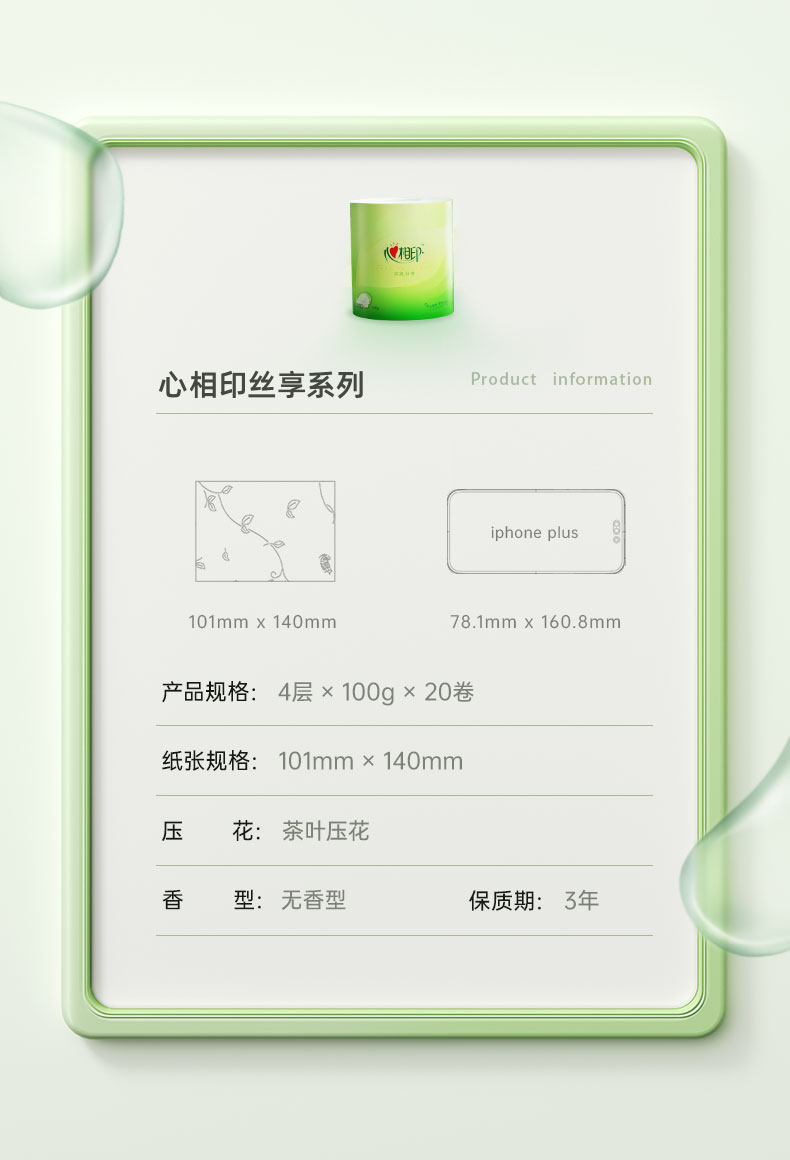 心相印心柔100克20卷装四层卷筒卫生纸