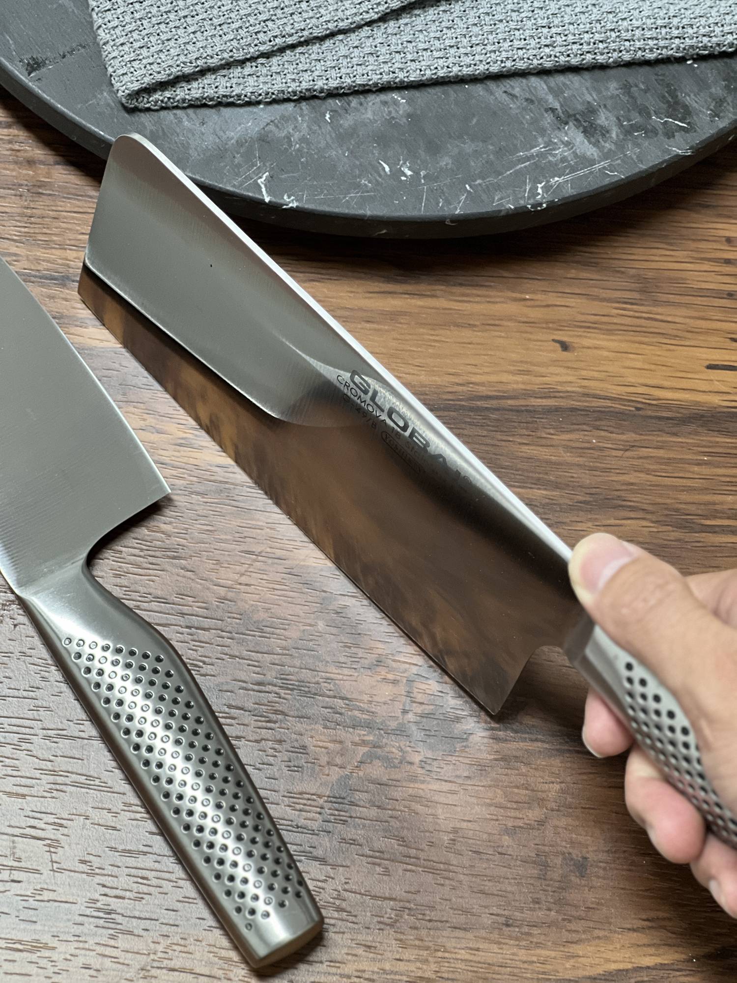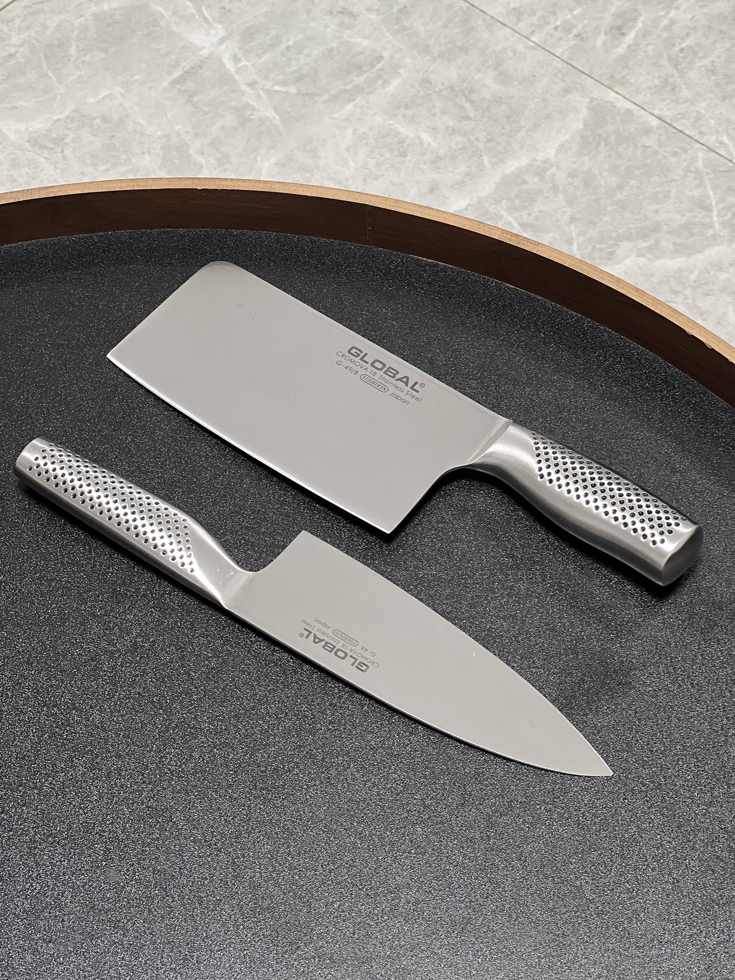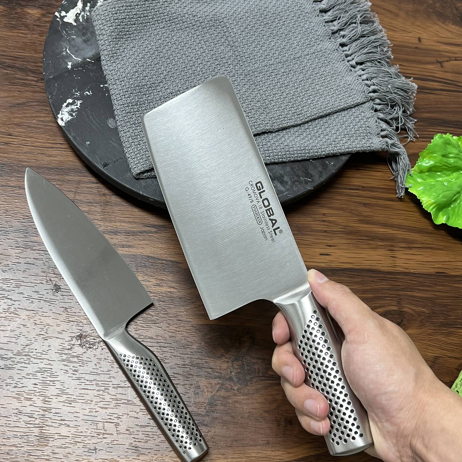 日本GLOBAL具良治中式不锈钢菜刀两件套,由日本吉田金属工业株式会社出品,欧美市场的主要日本厨刀品牌之一,长期占据十大热销榜榜单,精选一体式结构,手柄和刀身均为不锈钢材质,刀片刀柄处不会有藏污纳垢,整体外观设计比较有特色,且整体轻巧不笨重,使用灵活便捷,都具有更锋利的锋利边缘,可防止生锈,保证锋利性的同时,刀刃的韧性也比较好,因此刀刃的耐用性比较突出,日常使用中切割稍硬的食材不容易崩口,每把刀都经过精心加工,平滑的轮廓和无缝结构完全防止食物和污垢堆积,提供终极的安全和卫生