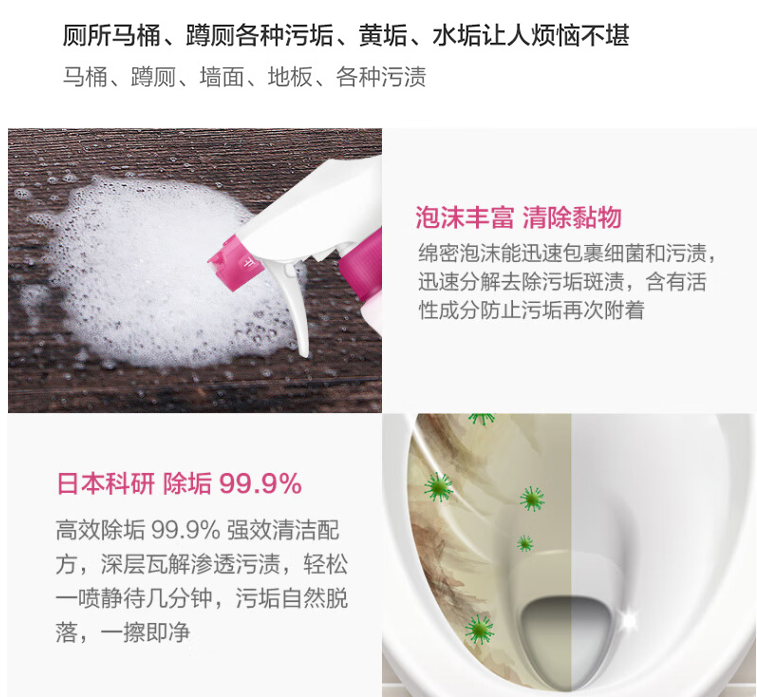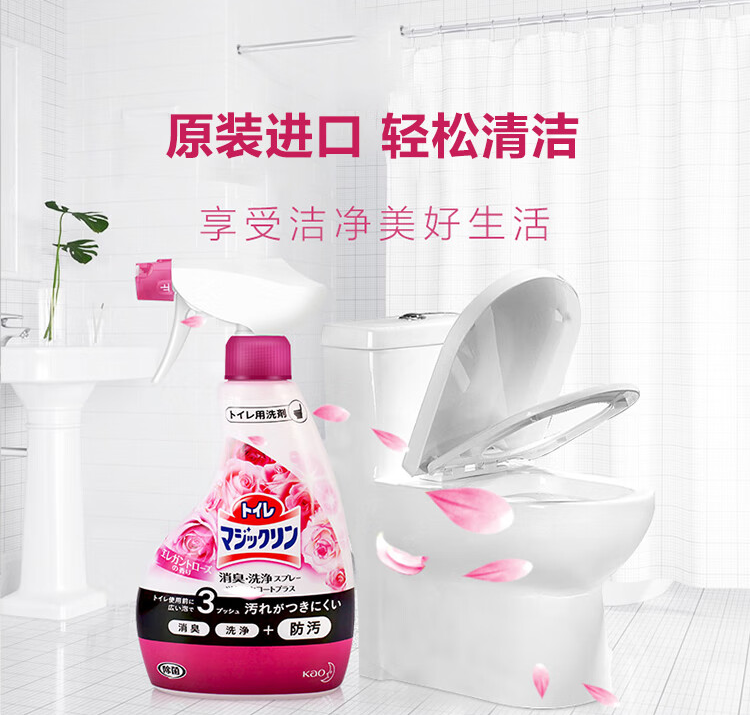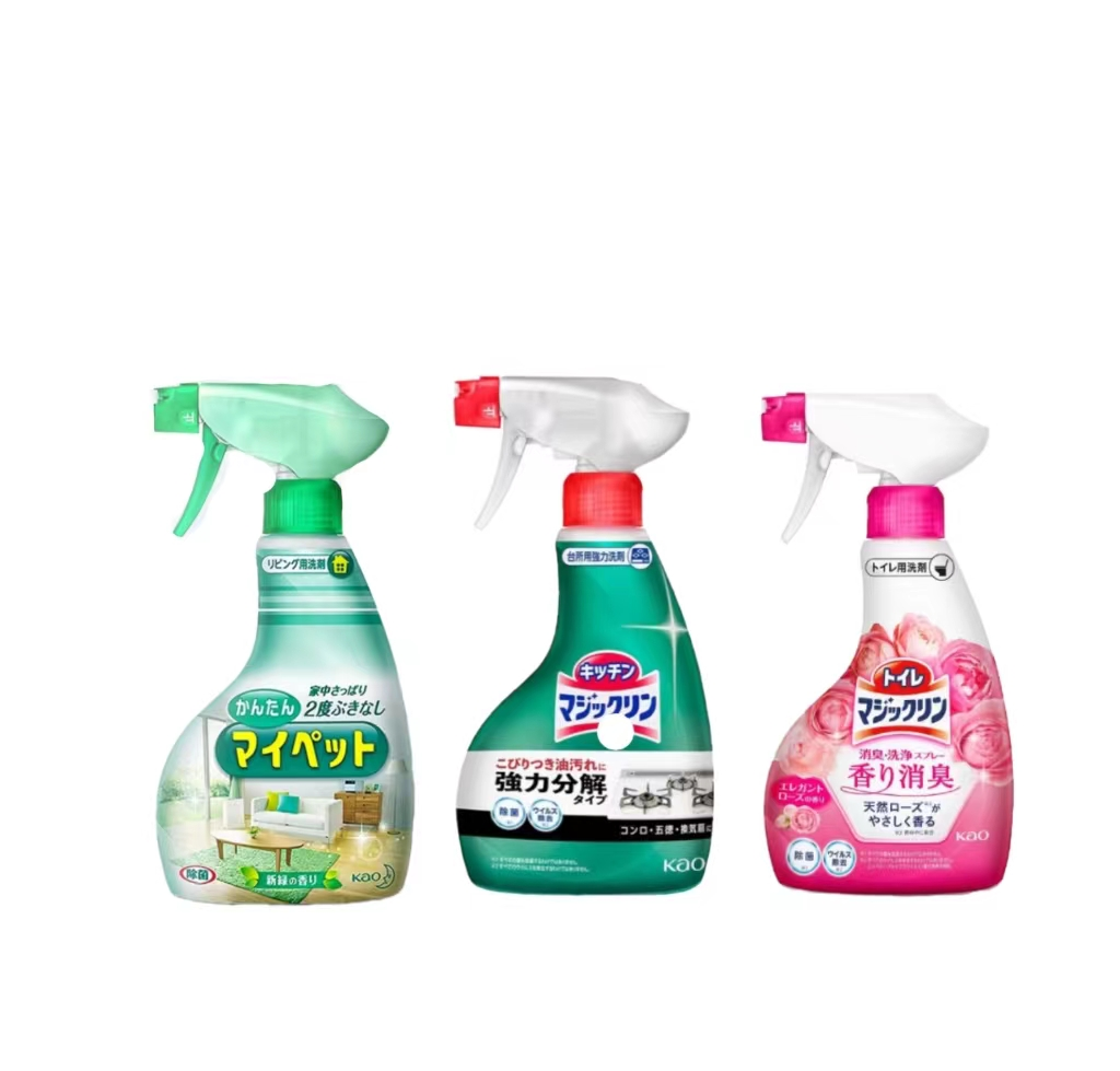 花王厨房油污喷雾-400ml+ 花王-洁厕喷雾 玫瑰香 380ml(颜色随机)+ 花王多功能家具地板除菌清洁剂400m