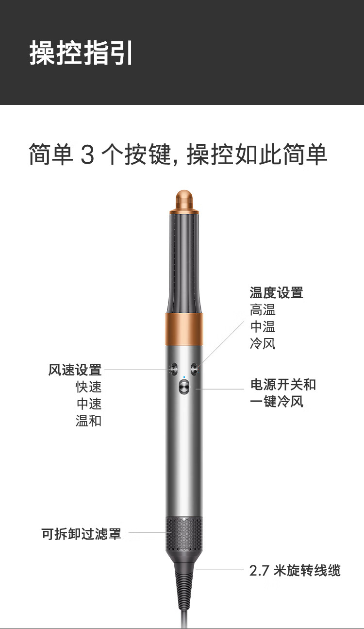 戴森(DYSON)多功能美发棒空气卷发棒 多功能合一 长发版