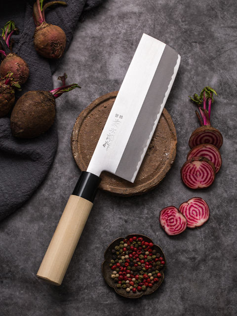 藤次郎日本白纸钢薄刃日式刀家用超薄锋利切片刀切寿司刀小菜刀厨刀(原木柄)