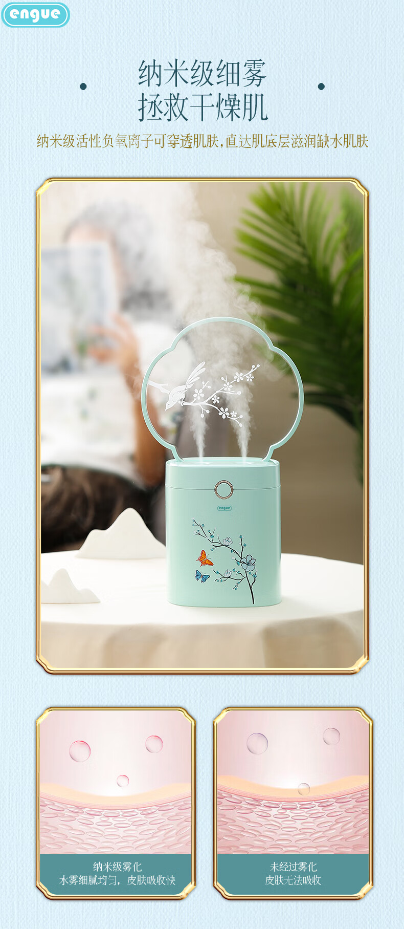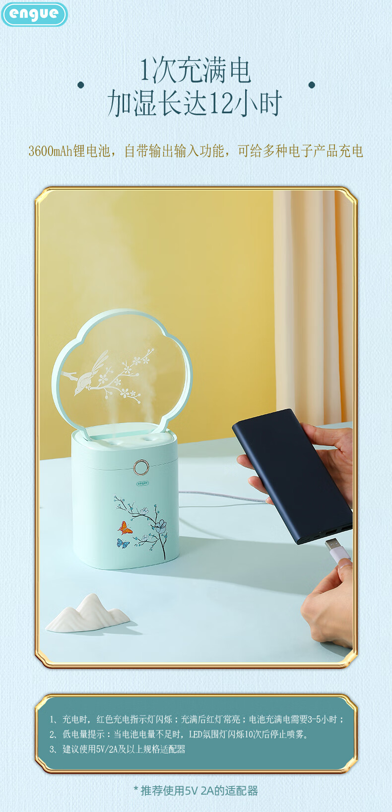 engue恩谷迷你加湿器 创意旅行办公礼品 USB空气加湿器 EG-026花漾加温器