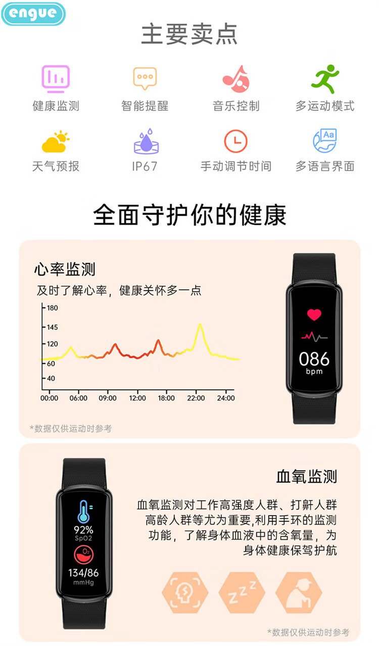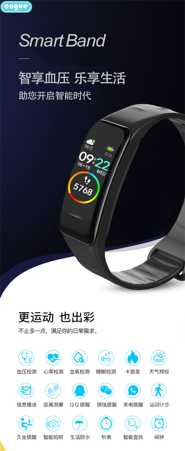 engue恩谷时间日期显示记步心率监测 智能运动手环手表 EG-T3S心率手环