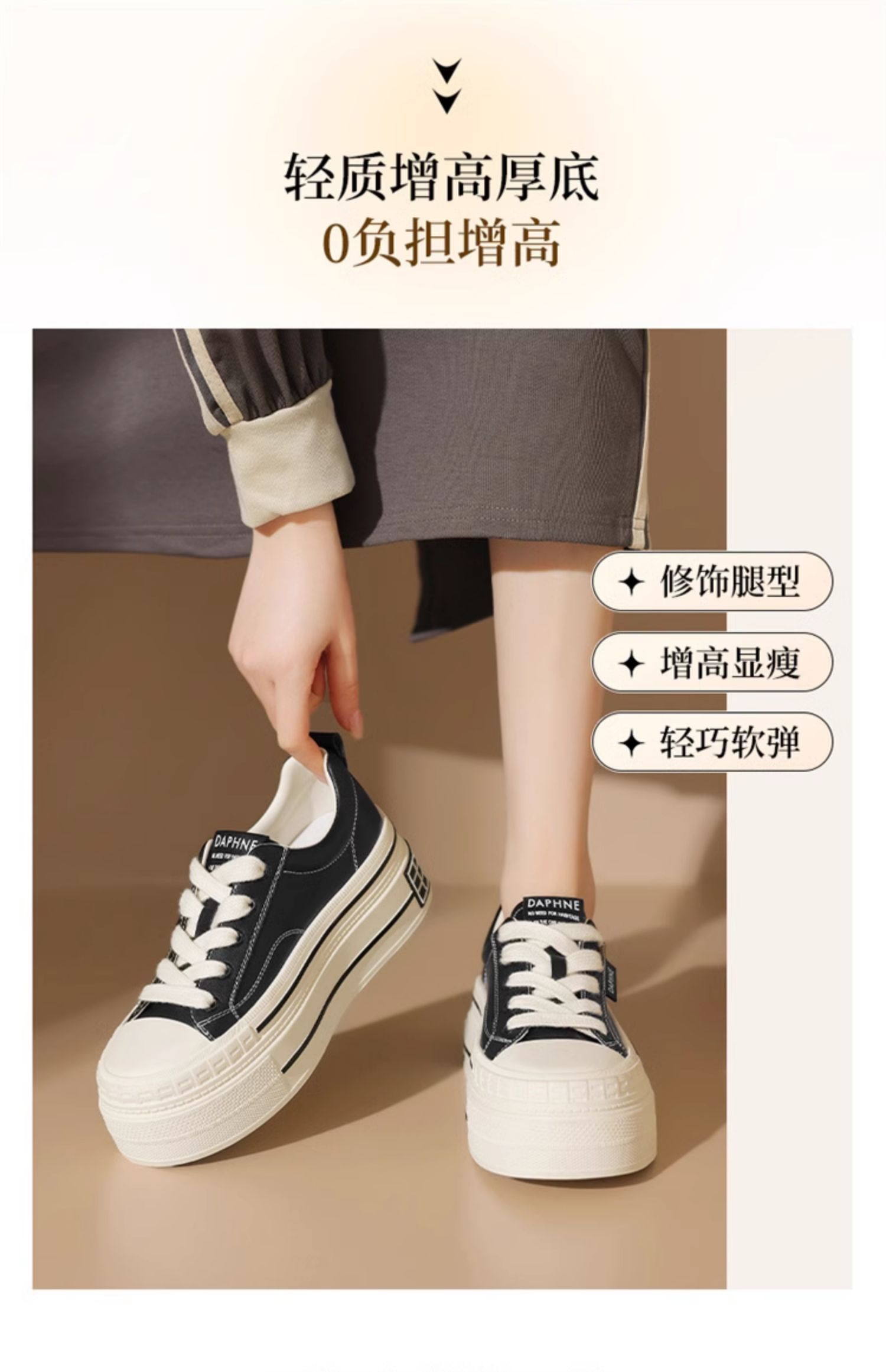 达芙妮厚底帆布鞋女新款运动休闲鞋板鞋女鞋4024101139