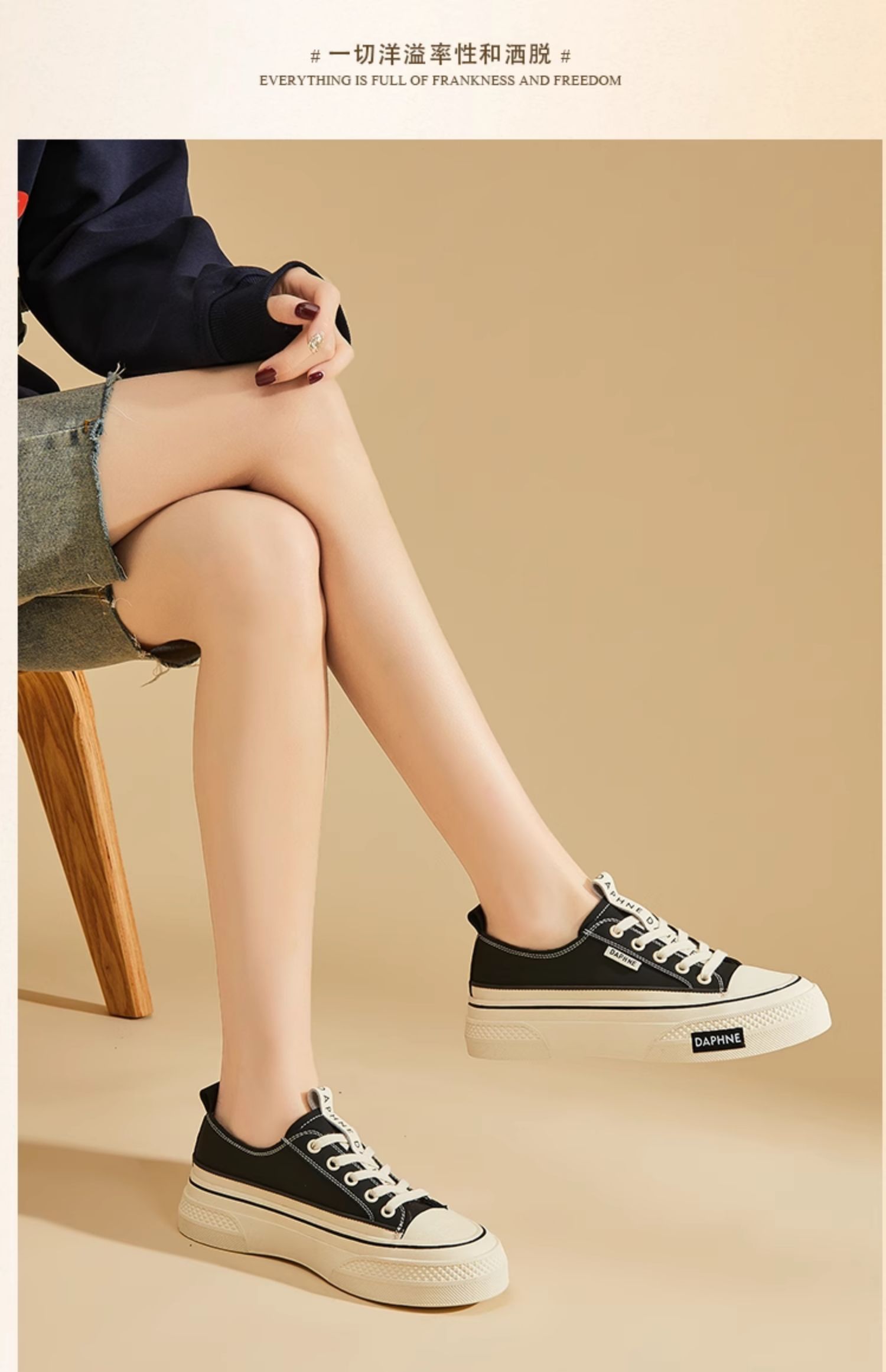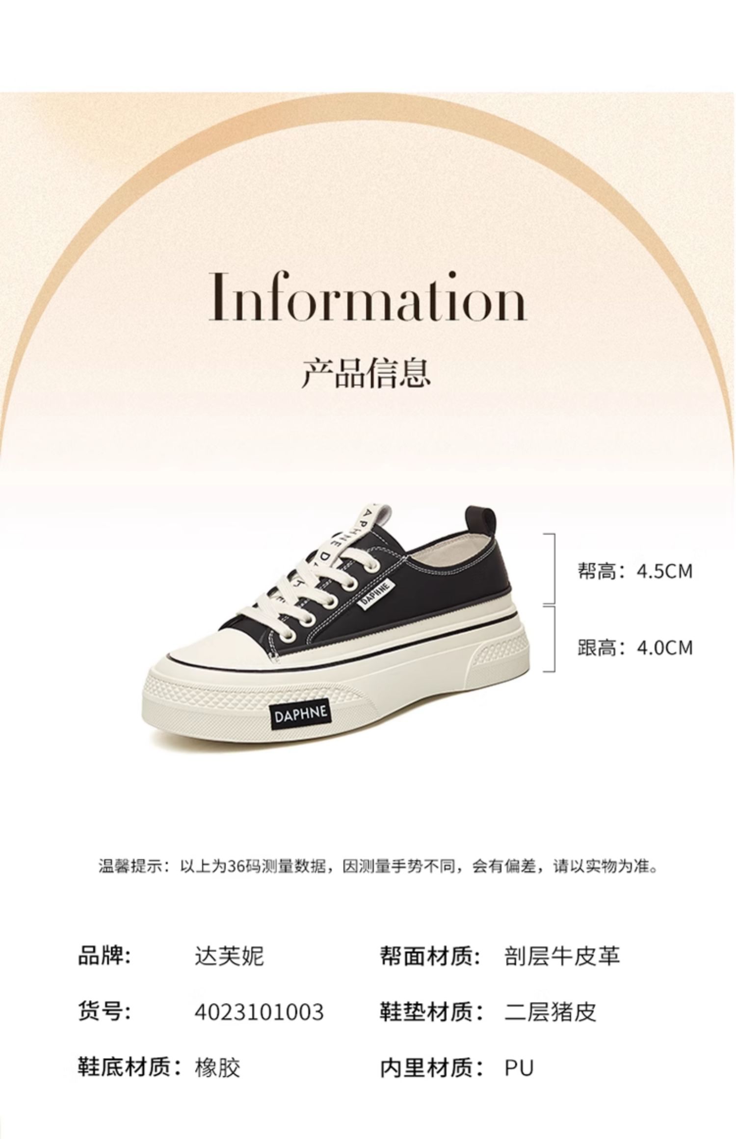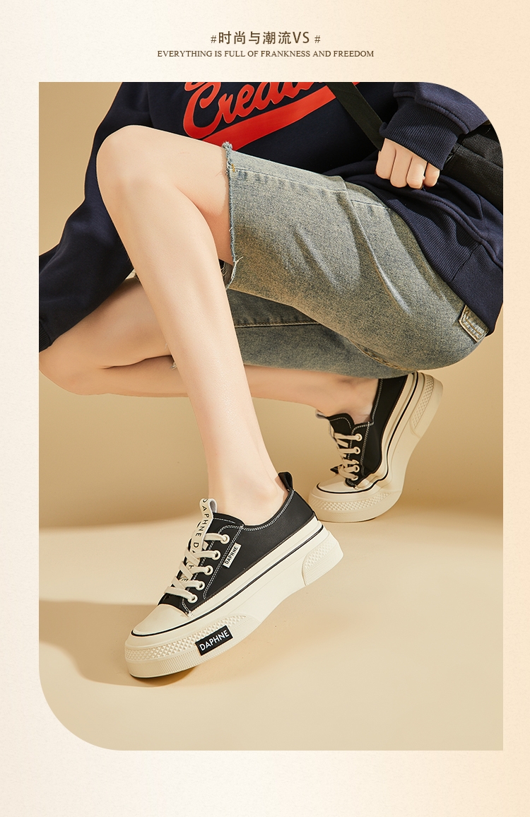达芙妮厚底增高帆布鞋真皮女鞋韩版布鞋4023101003