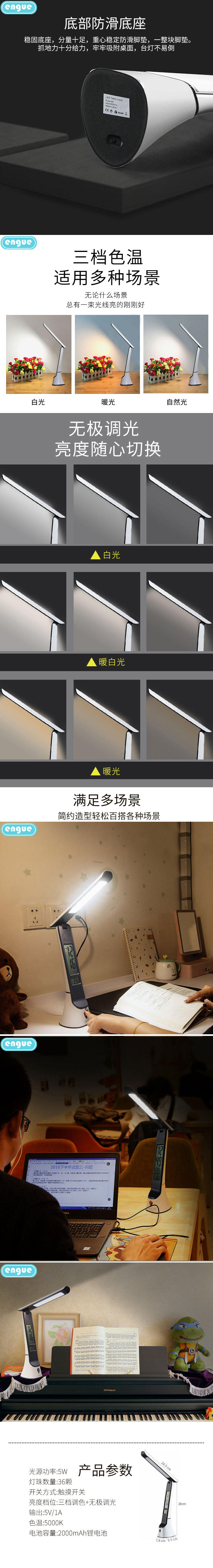 engue恩谷 双光源LED护眼台灯 学生学习台灯 办公护眼台灯 598B万年历皮纹台灯