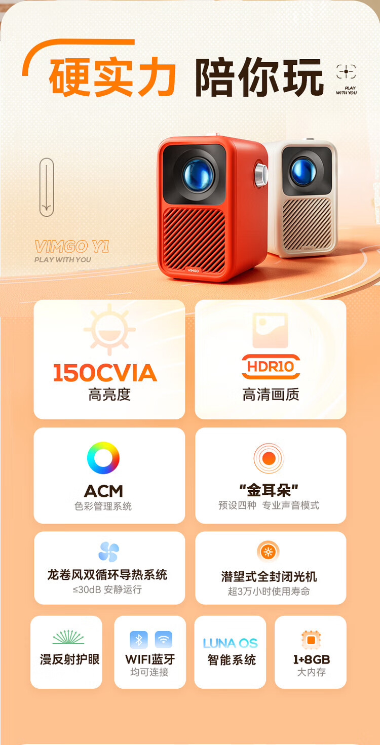 坚果投影仪Y1家用小型便携投影机卧室投墙家庭影院小型办公智能手机投屏(小巧便携 品质原彩) 微果Y1