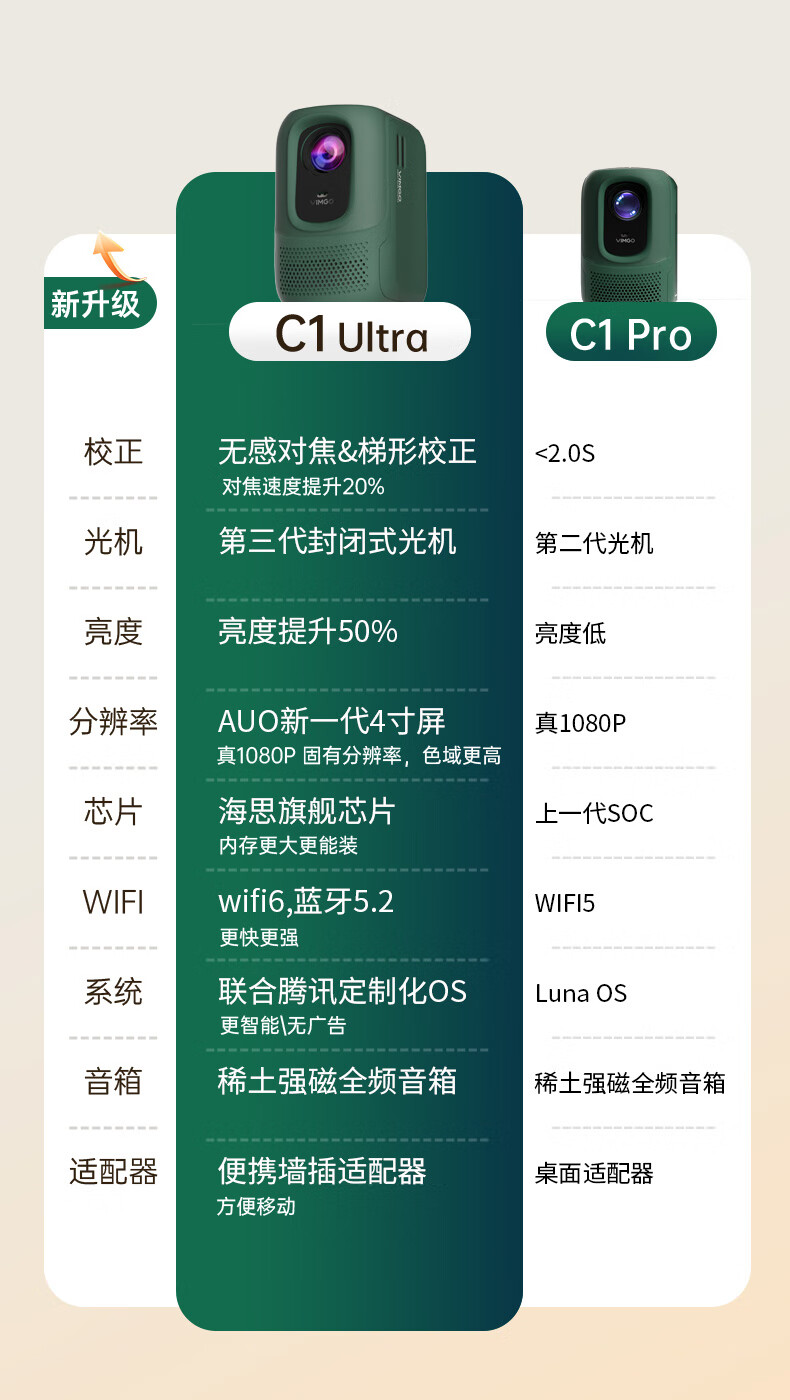 微果(VIMGO)【新品上市】C1 Ultra投影仪高清投影仪家用办公智能家庭影院客厅卧室手机可投屏