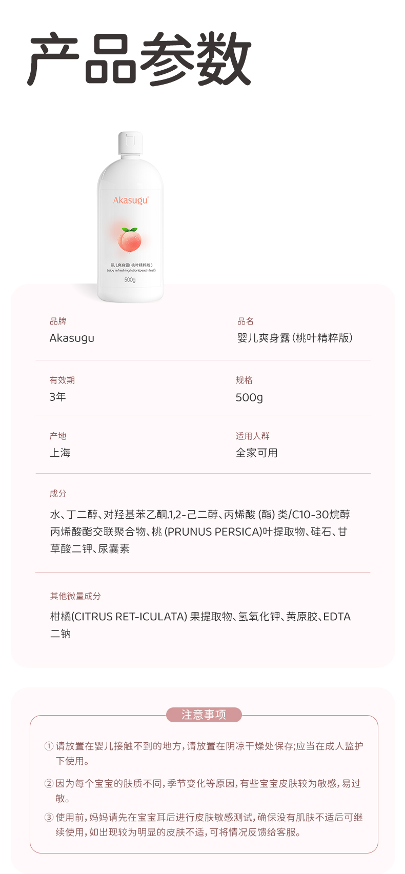 爱舒屋(akasugu)婴儿桃叶爽身露