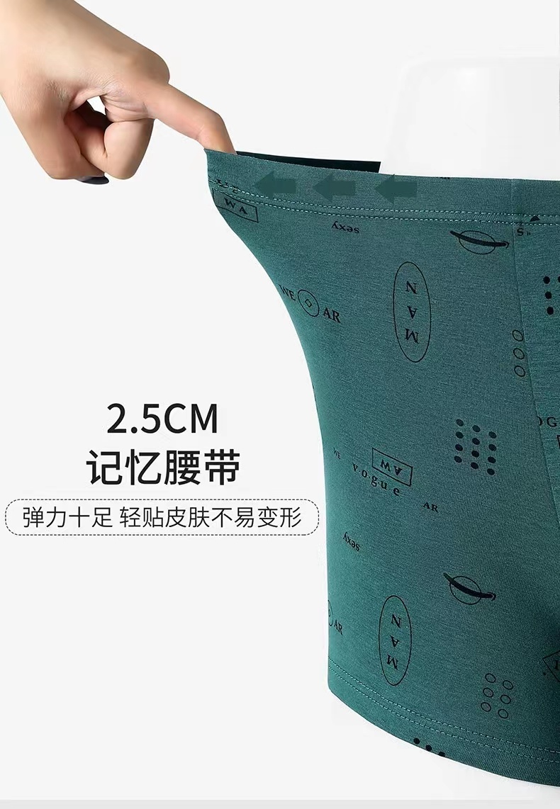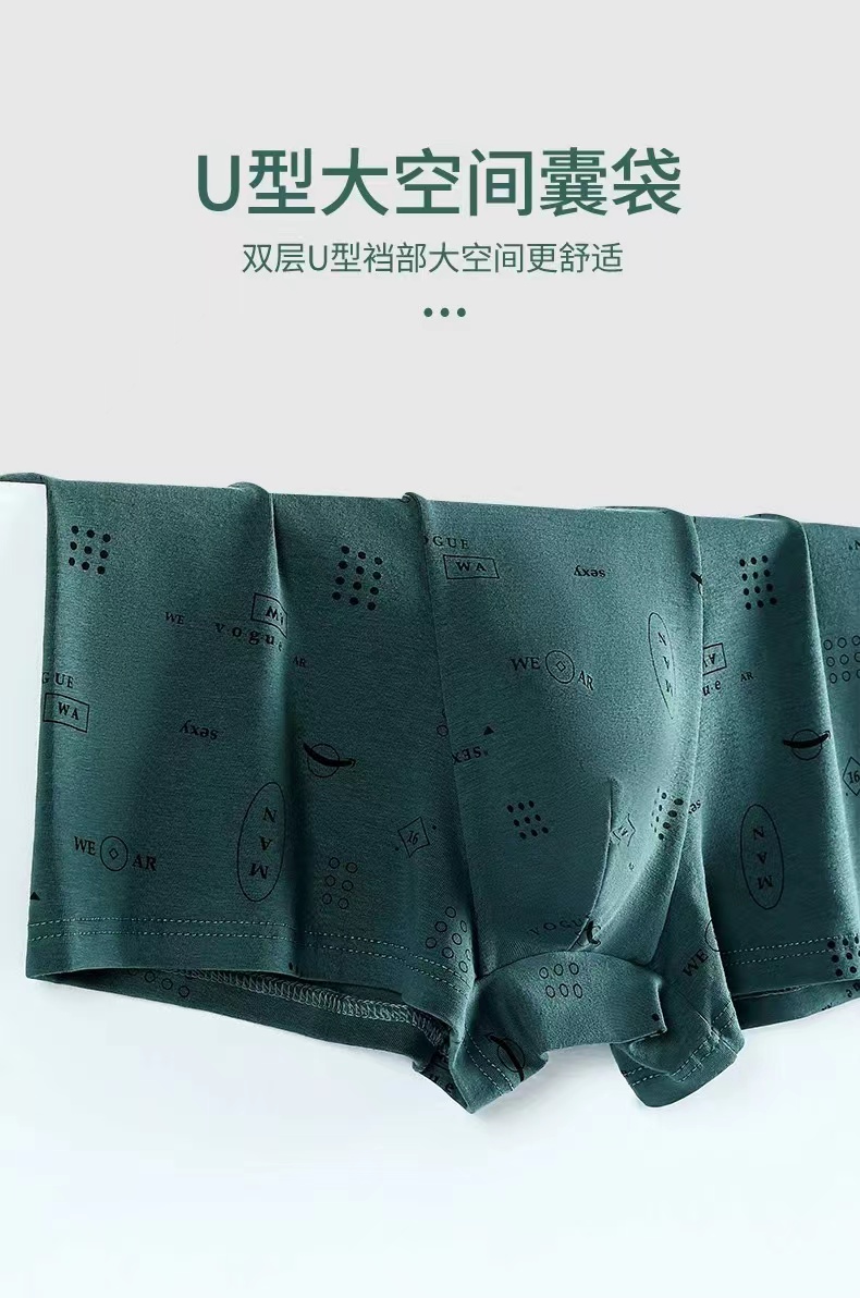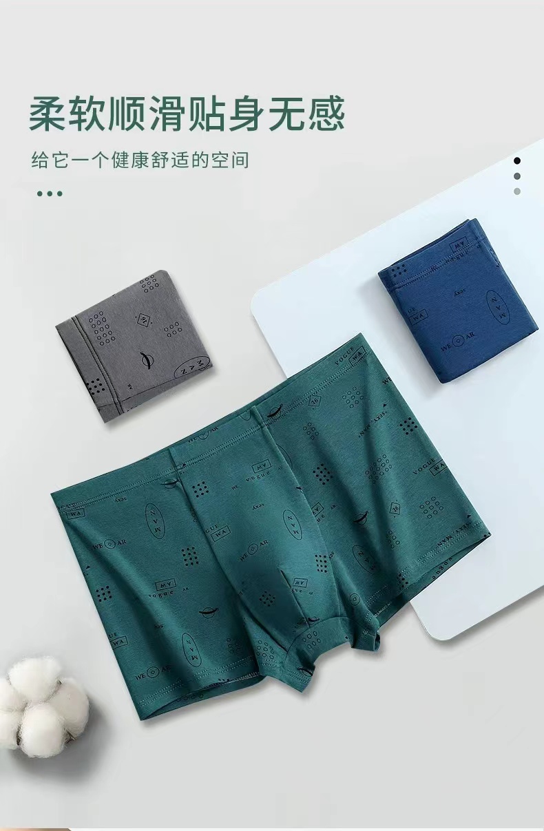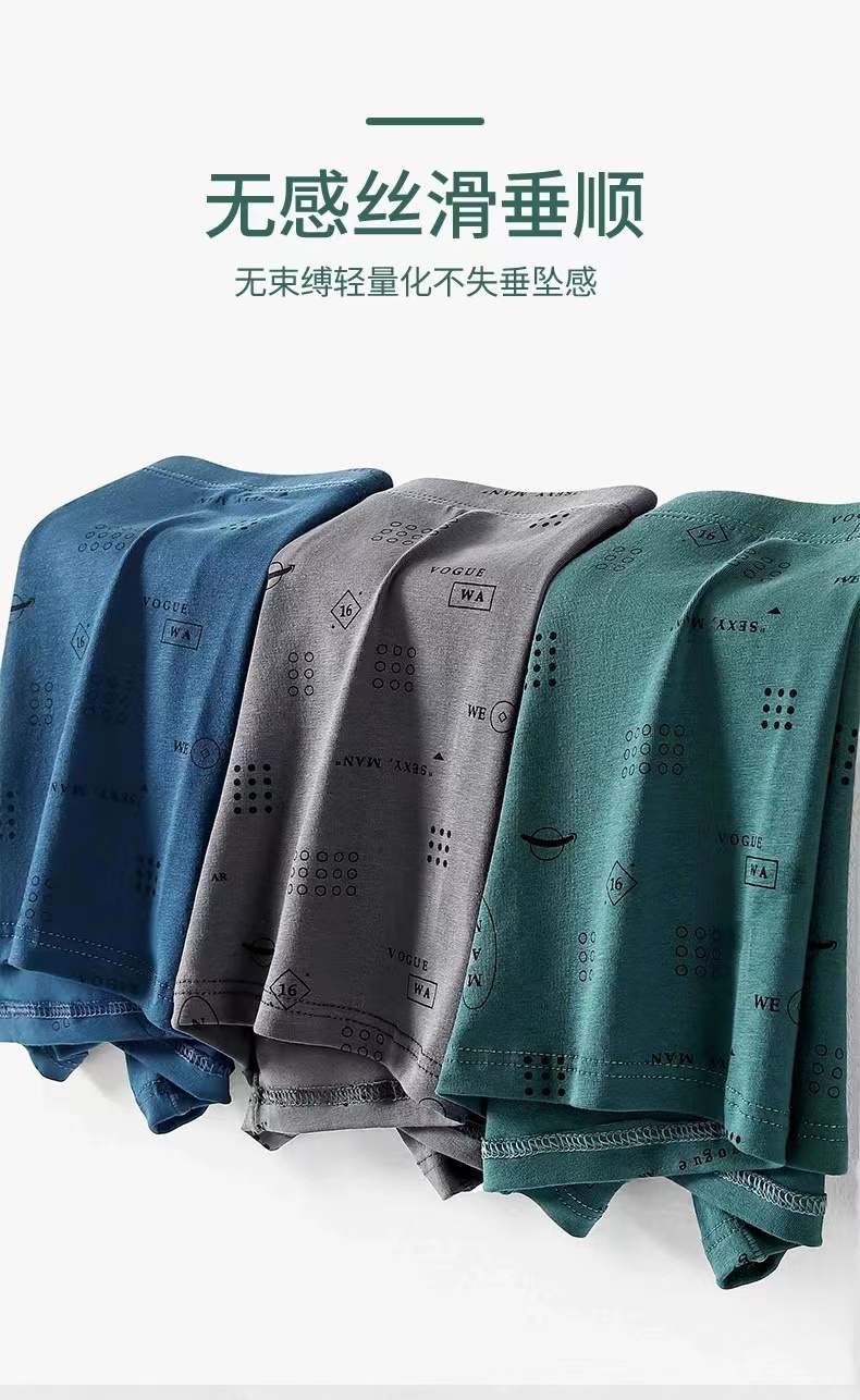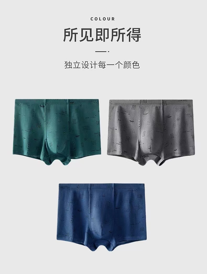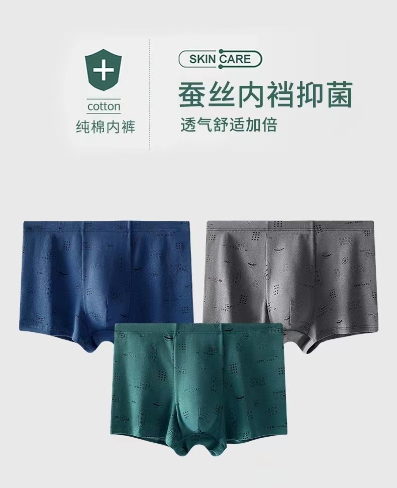 【秋鹭】3102款男士纯棉蚕丝裆印花平角内裤(1盒3条)