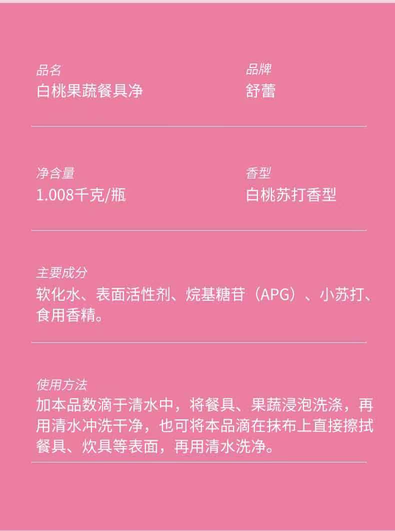 舒蕾 波卡莉香白桃果蔬餐具净 1.008kg