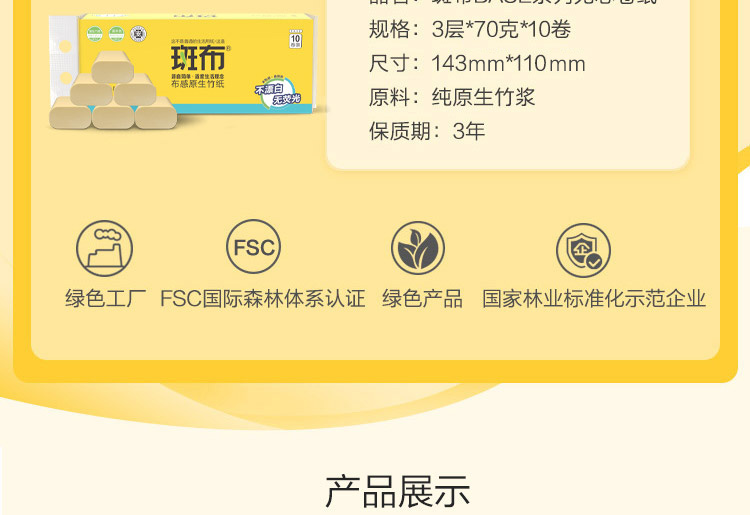 斑布 BASE系列 无芯无膜卷纸 70克*10卷