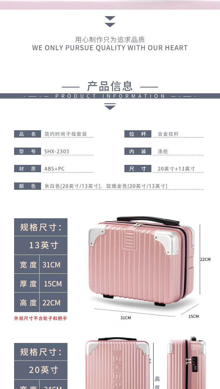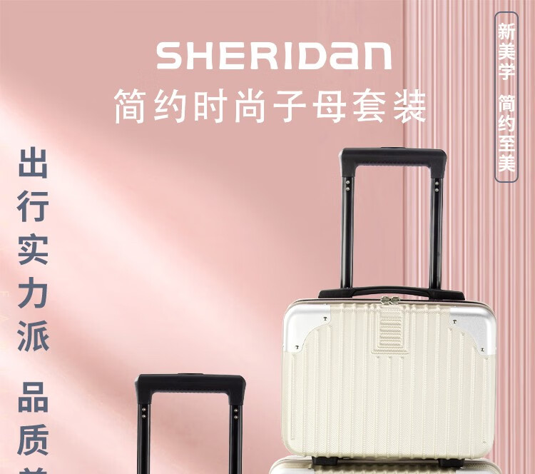 喜来登行李箱 拉杆包手提皮箱拉杆箱 旅行箱包 玫瑰金色 子母箱 20英寸+13英寸