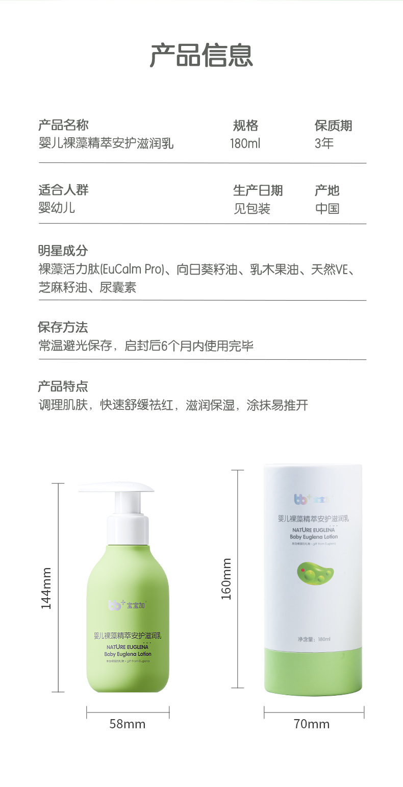 宝宝加婴儿裸藻滋润乳儿童保湿护肤宝宝补水身体润肤乳防干痒四季
