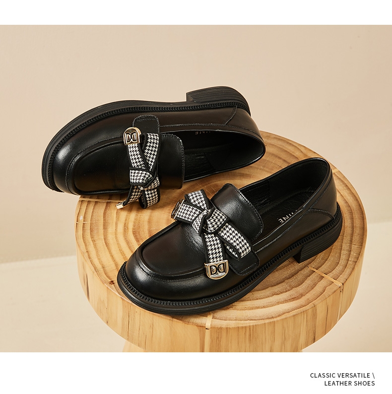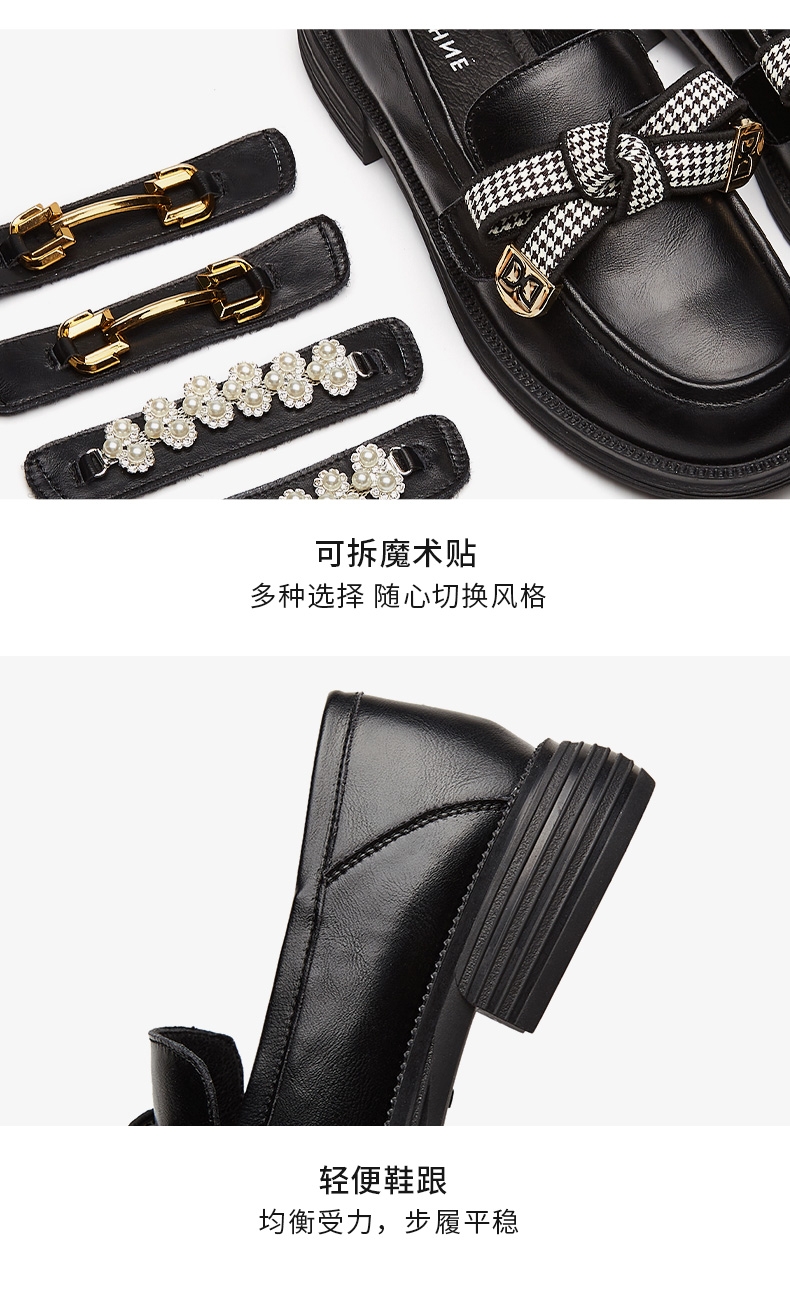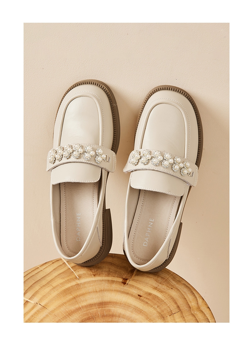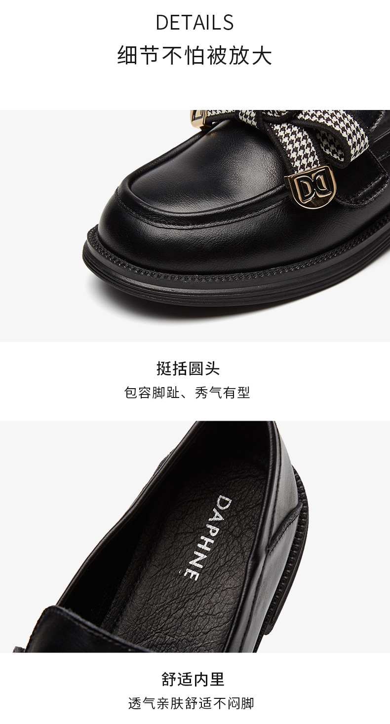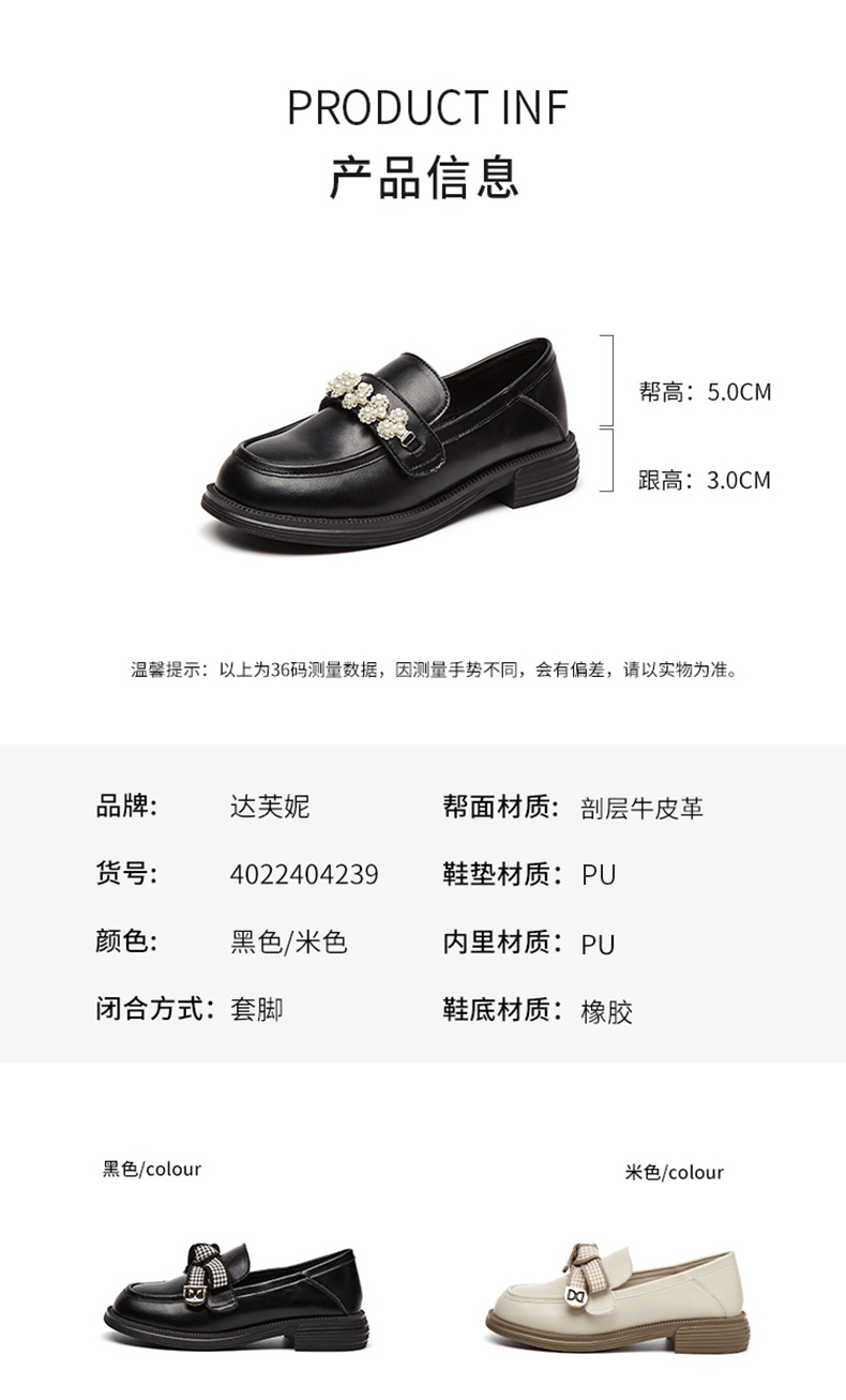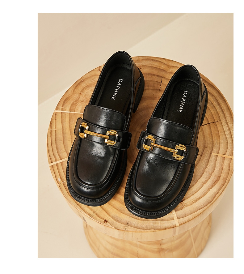 达芙妮真皮乐福鞋女新款粗跟增高单鞋一脚蹬鞋子4022404239