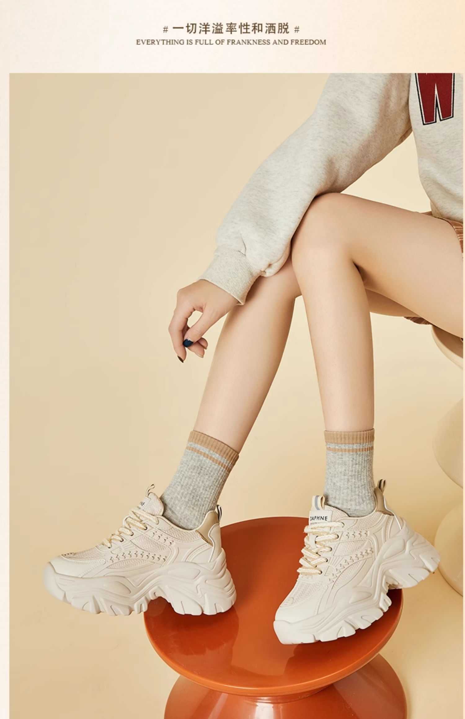 达芙妮厚底透气老爹鞋增高网面休闲运动鞋4023101025