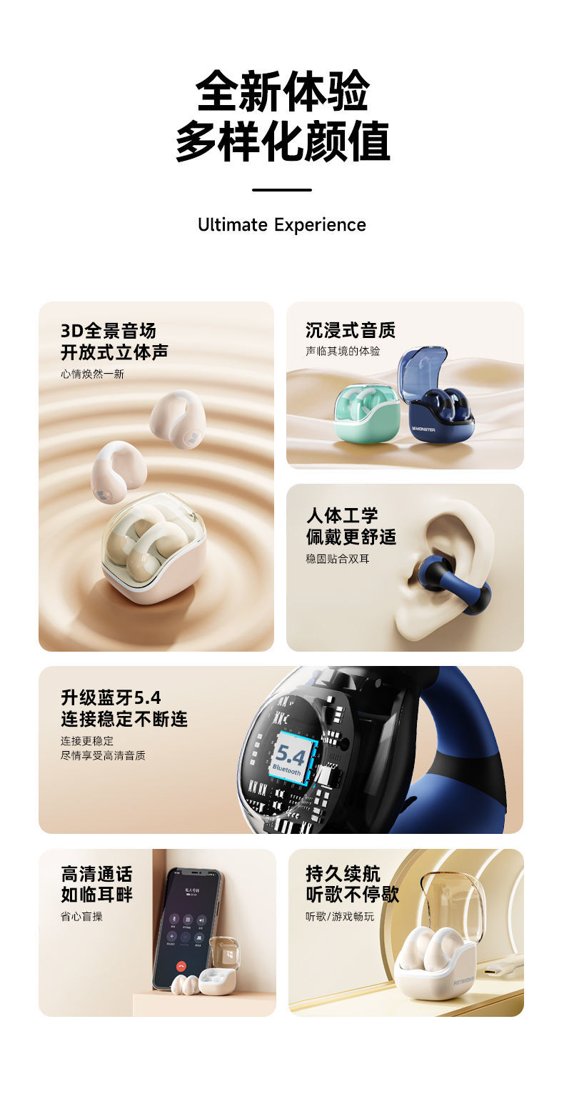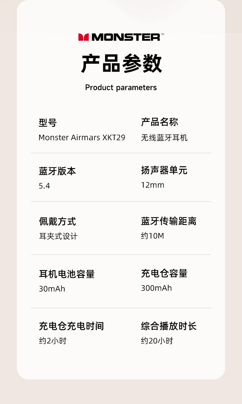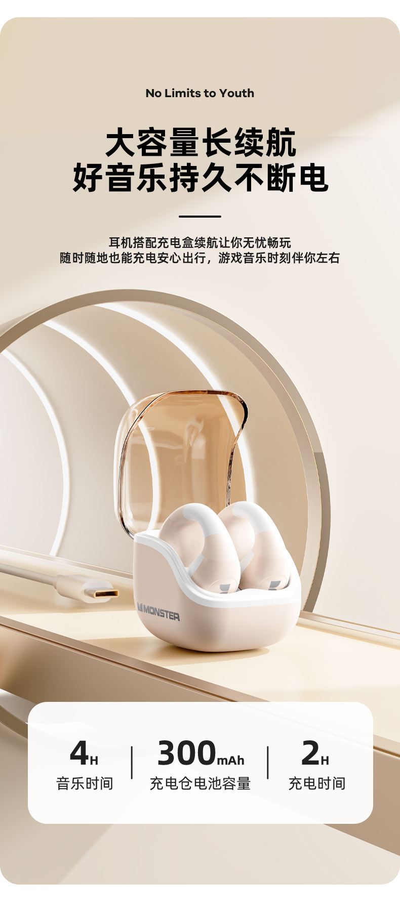 MONSTER魔声气传导蓝牙耳机Xkt29夹耳式耳机