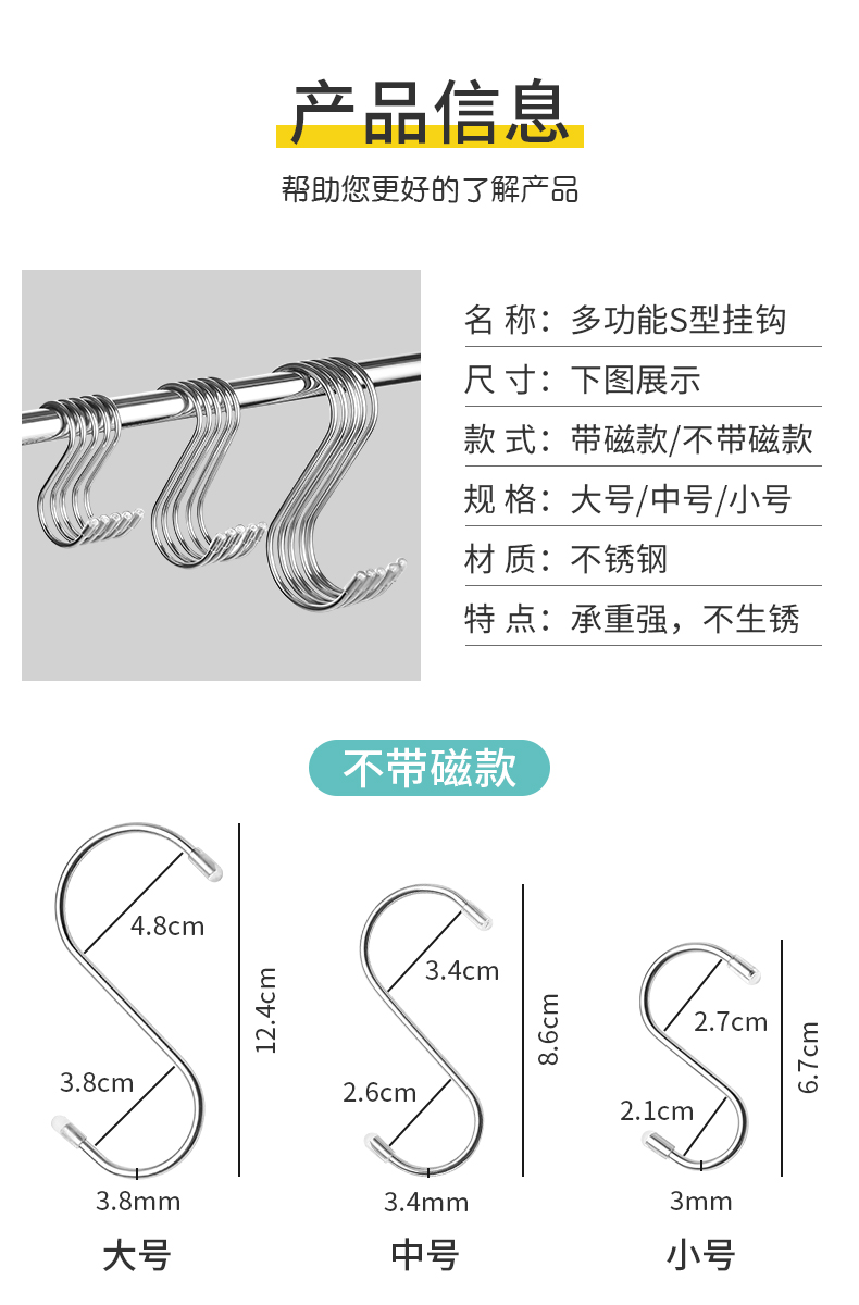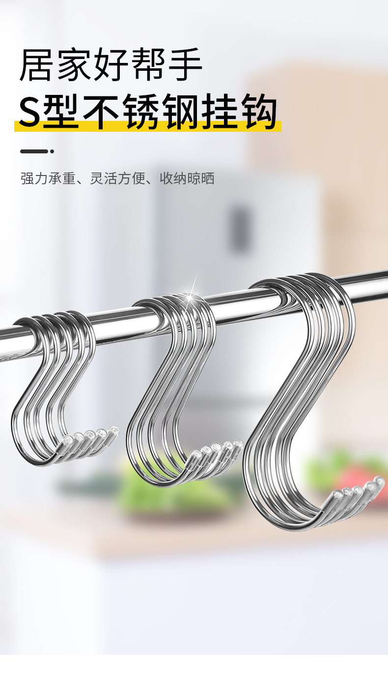 不锈钢s型挂钩挂腊肉钩厨房多功能尖钩浴室s勾宿舍学生课桌s钩子