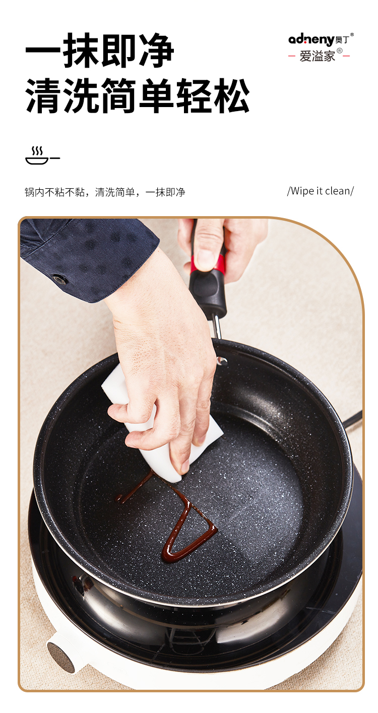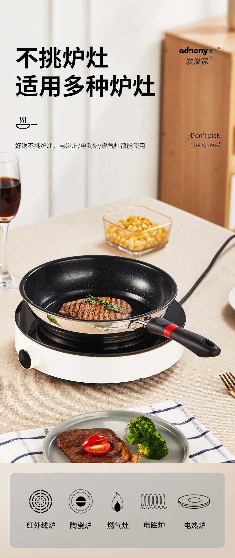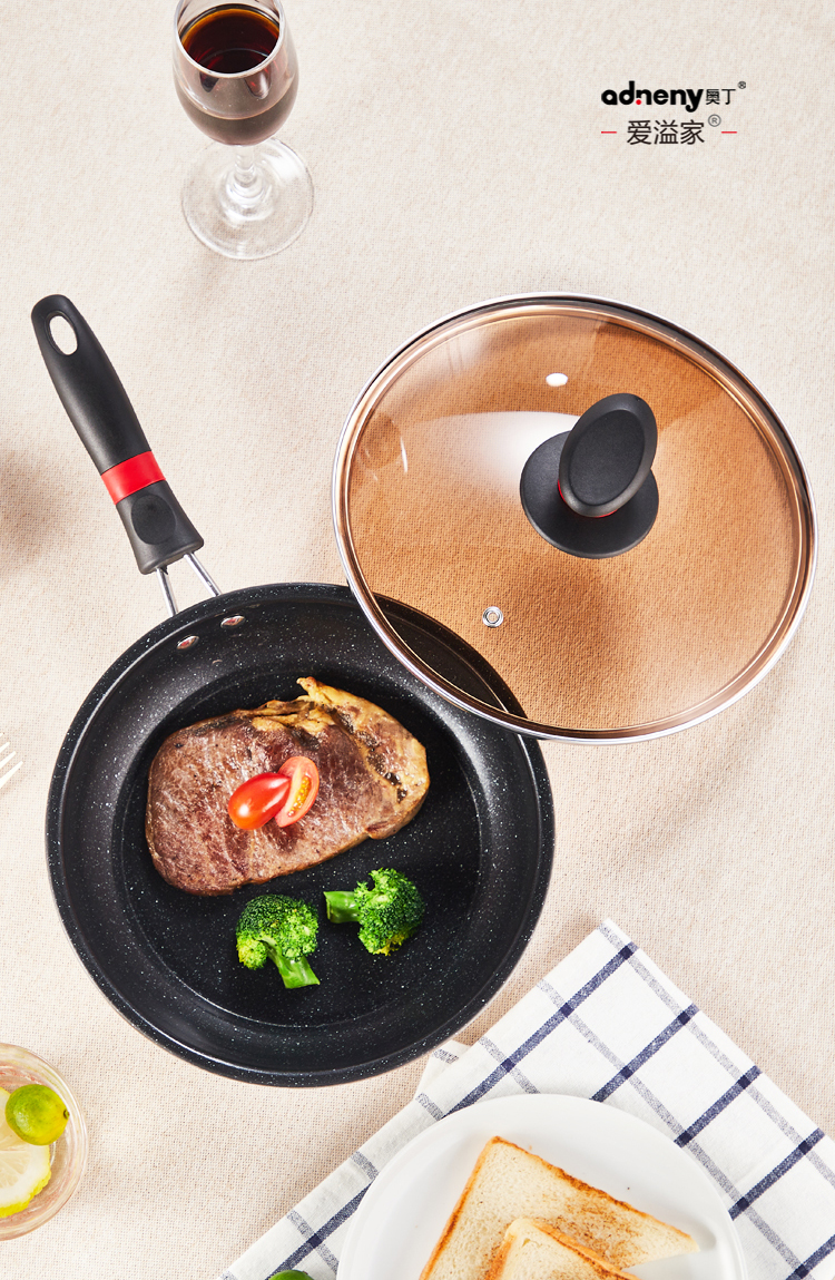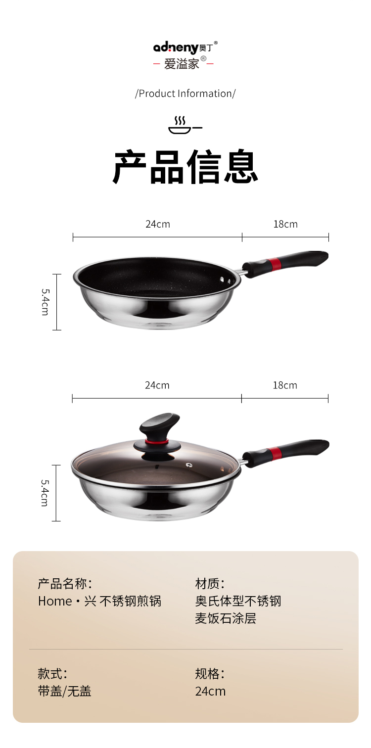 Adneny麦饭石涂层 奥氏体不锈钢煎锅带盖24cm AO-83