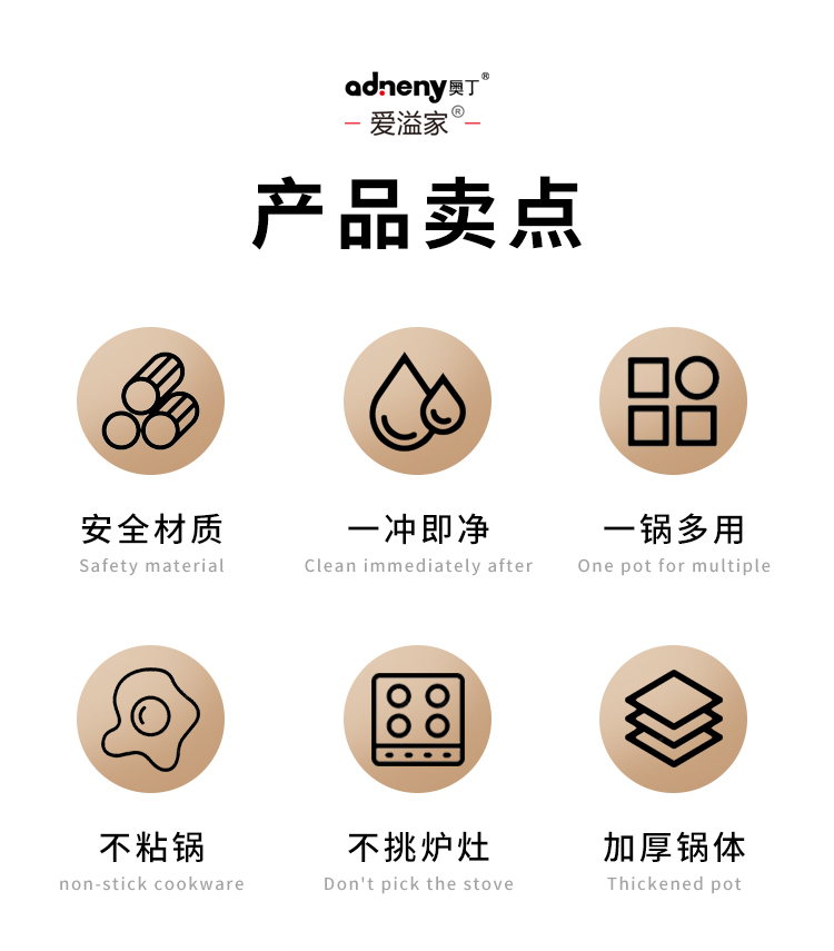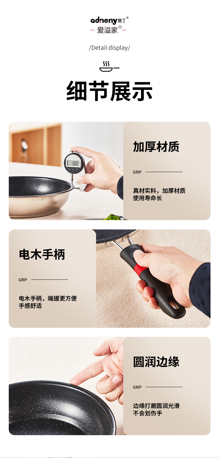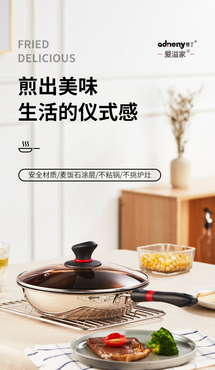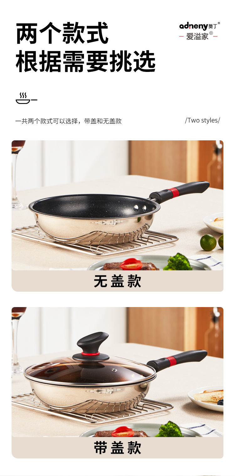 Adneny麦饭石涂层 奥氏体不锈钢煎锅带盖24cm AO-83