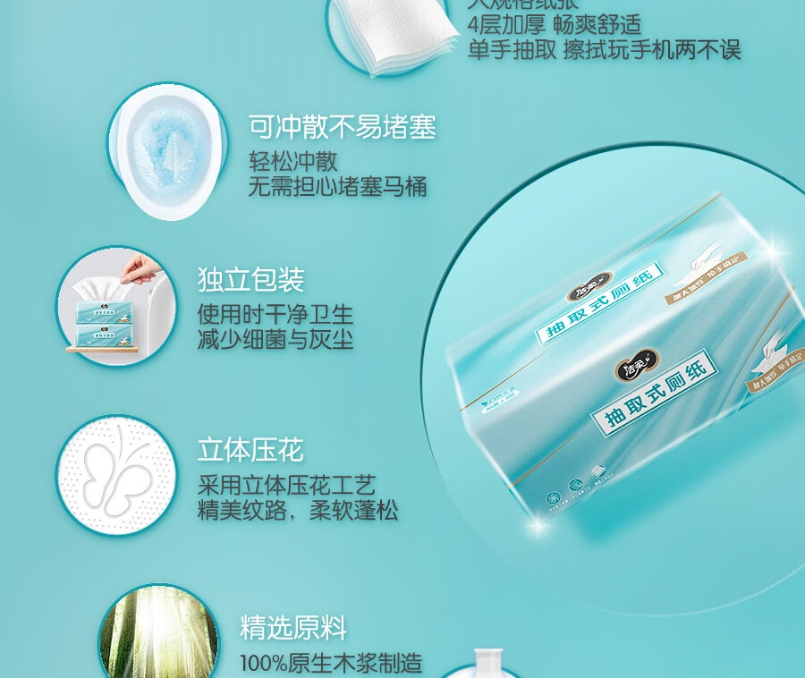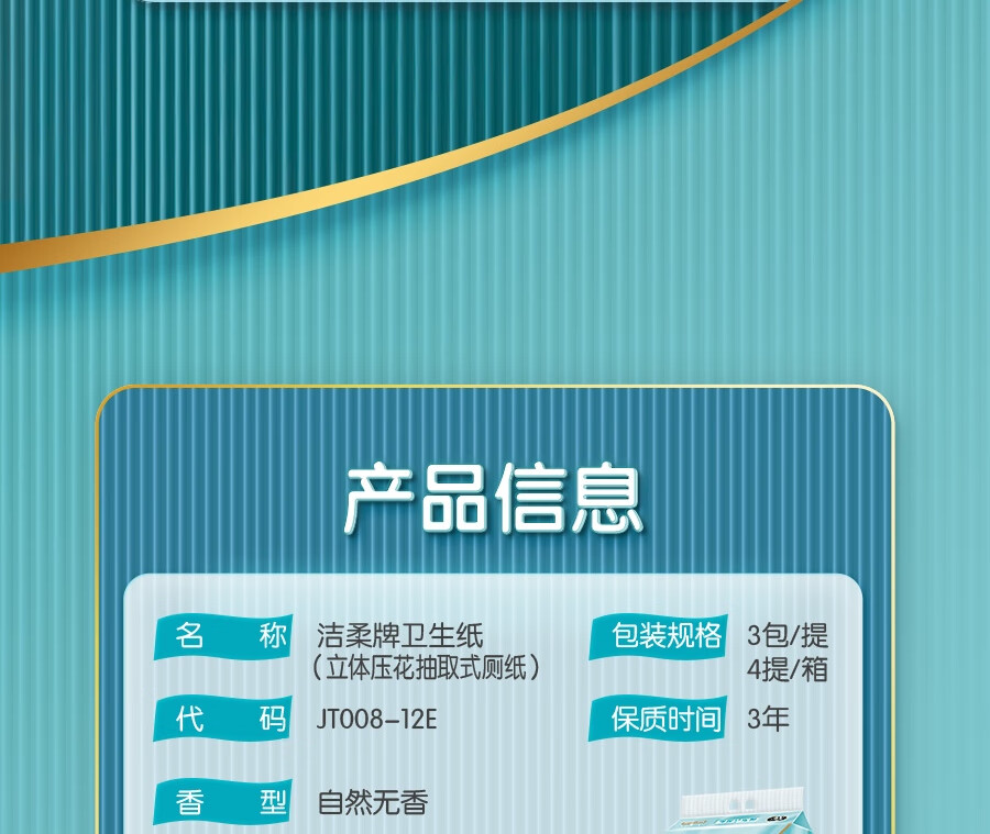洁柔牌卫生纸立体压花抽取式厕纸86抽4层12包装 JT008-12E