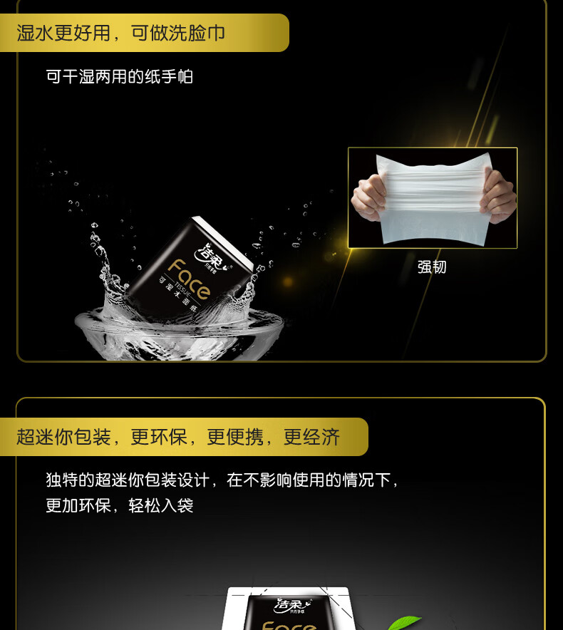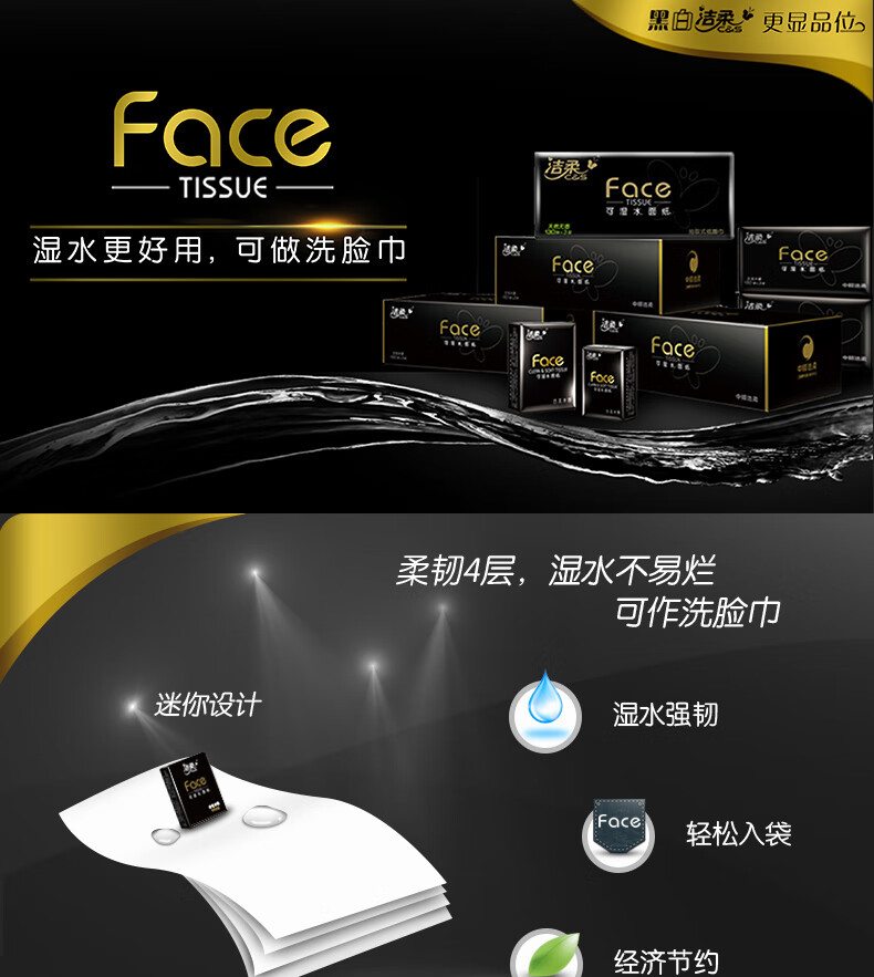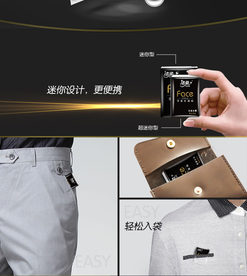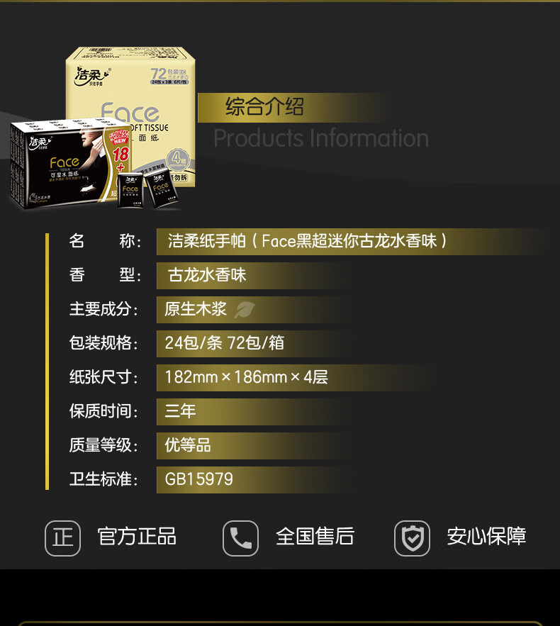 洁柔纸手帕Face黑超迷你古龙水香味6片4层72包装 BU084-72E