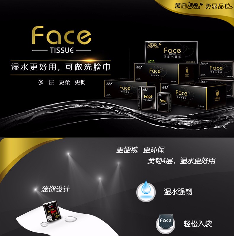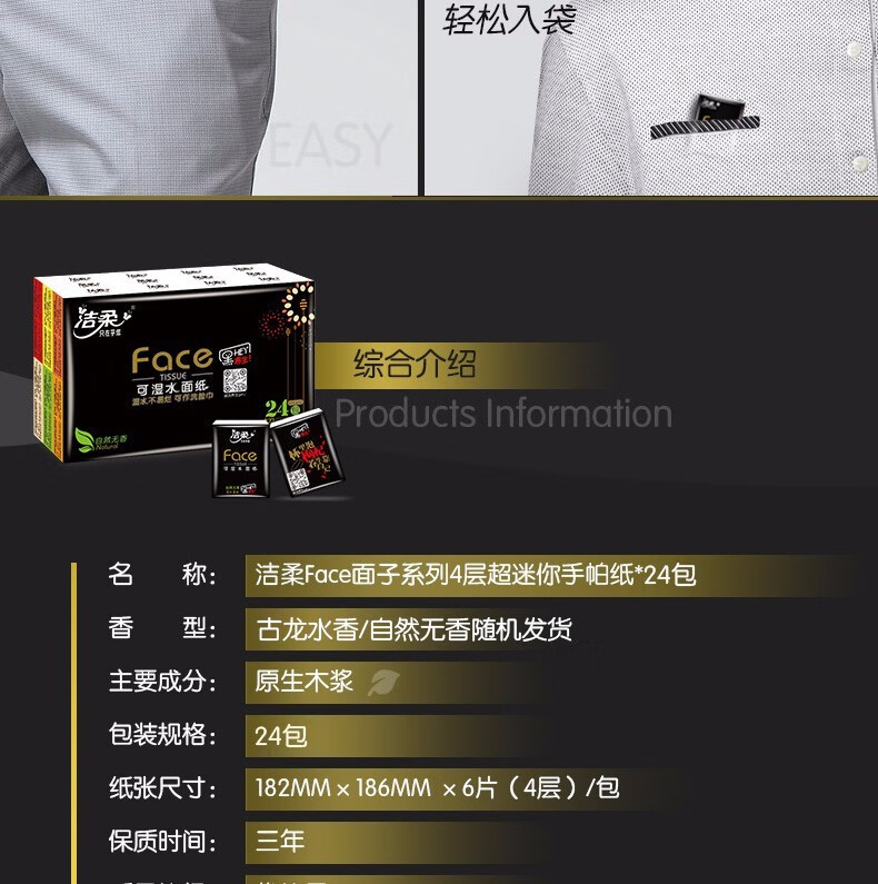 洁柔纸手帕Face黑自然无香超迷你24包装 BU095-24E