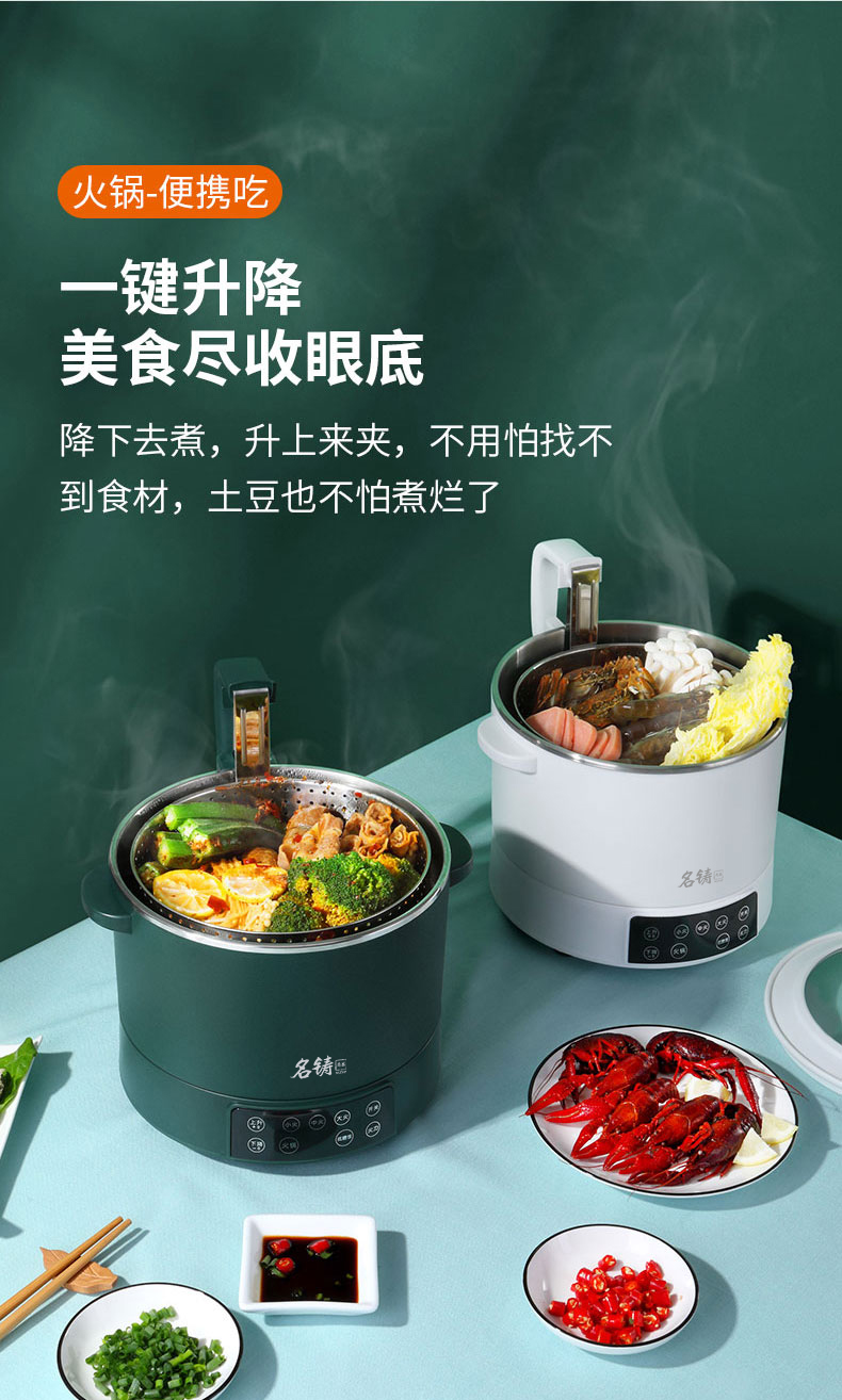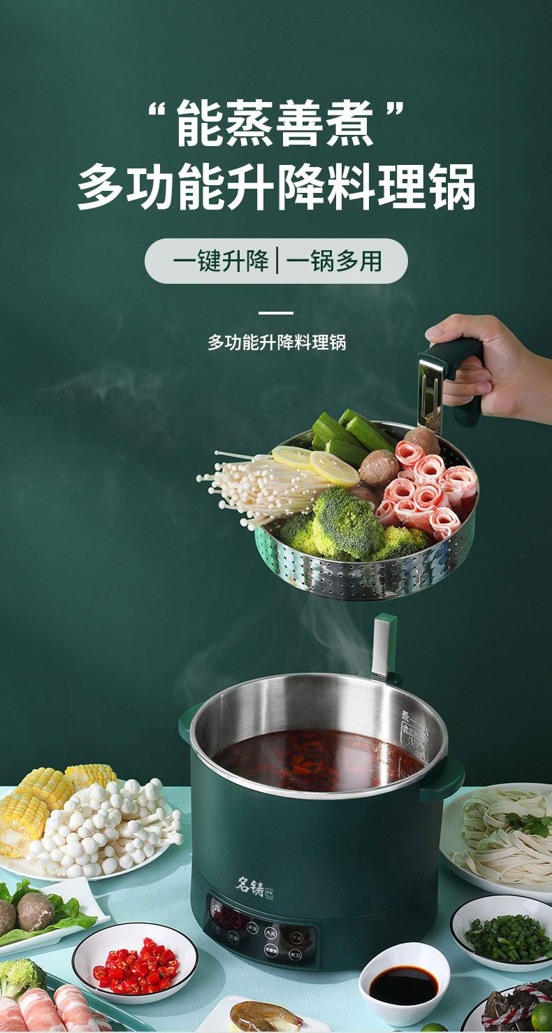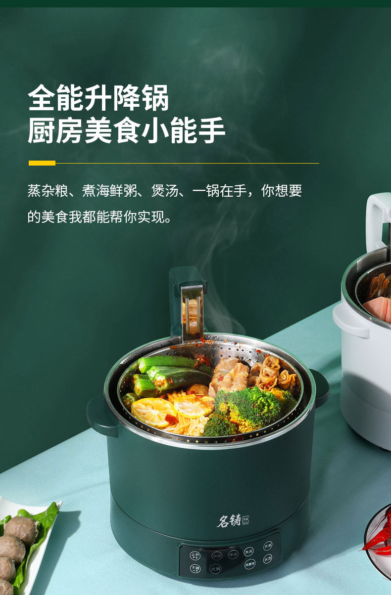 新款多功能智能升降电火锅小型养生锅料理锅电饭煲蒸锅3L