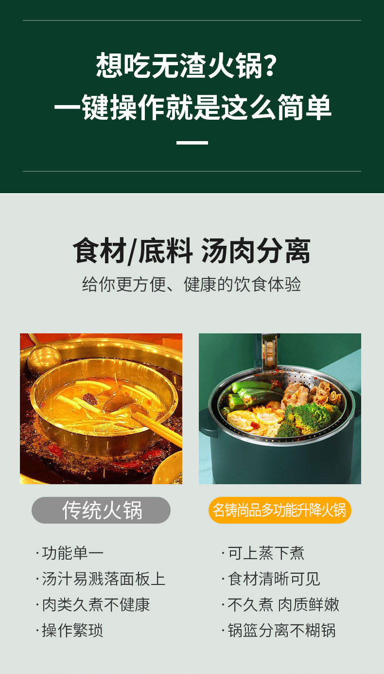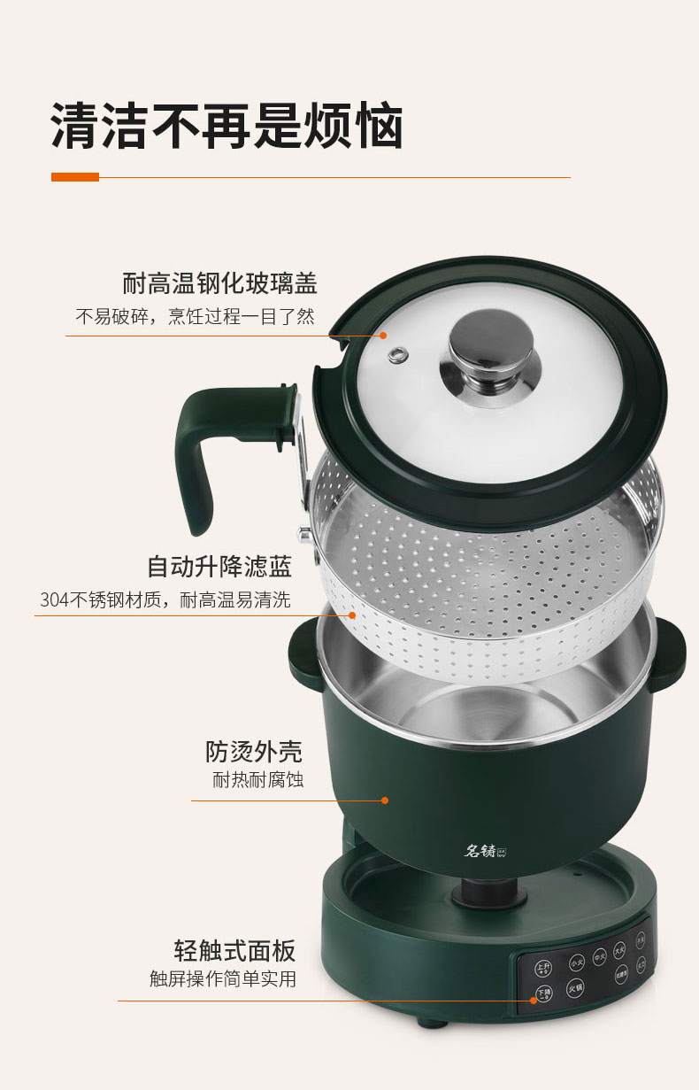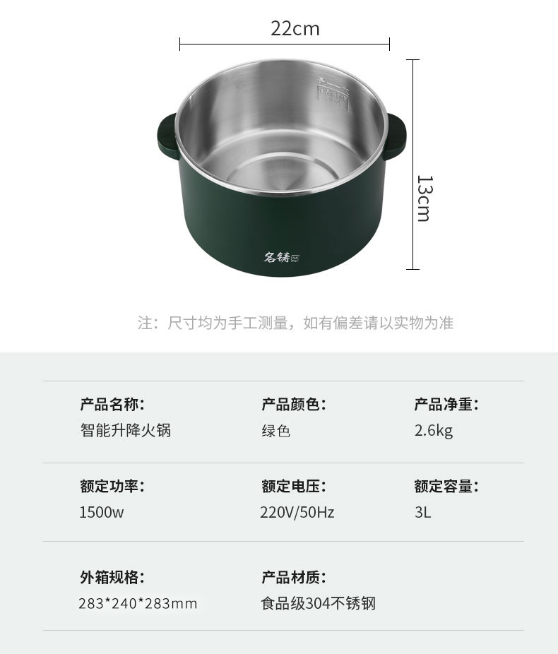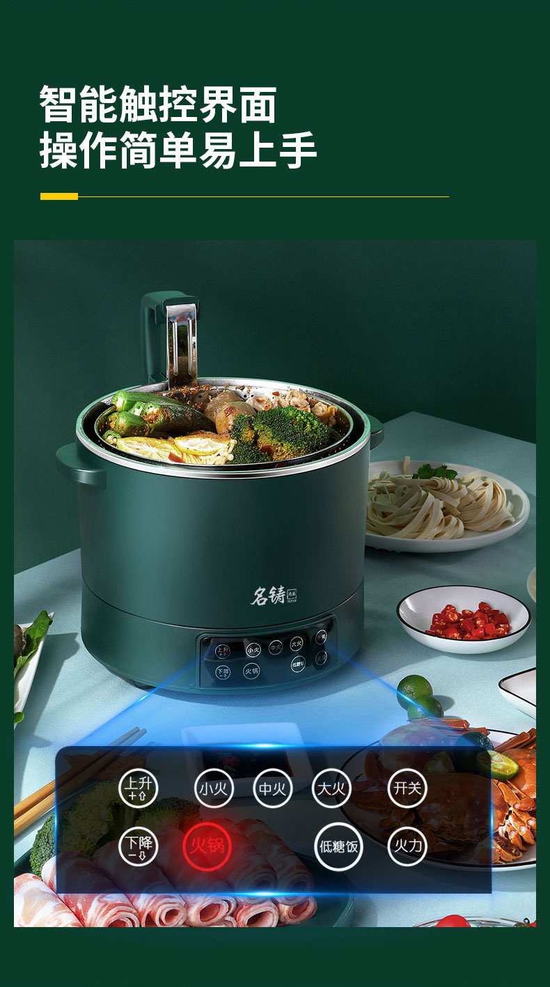 新款多功能智能升降电火锅小型养生锅料理锅电饭煲蒸锅3L